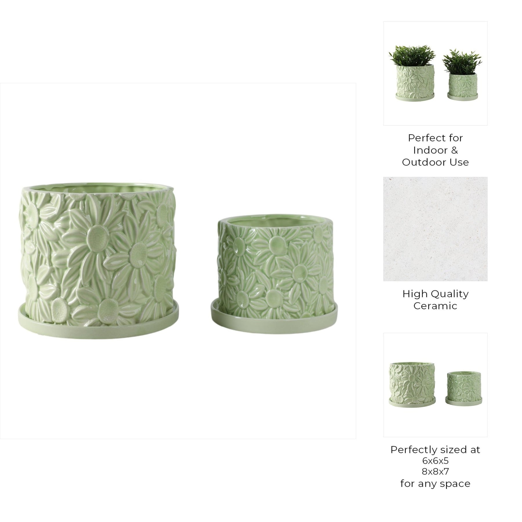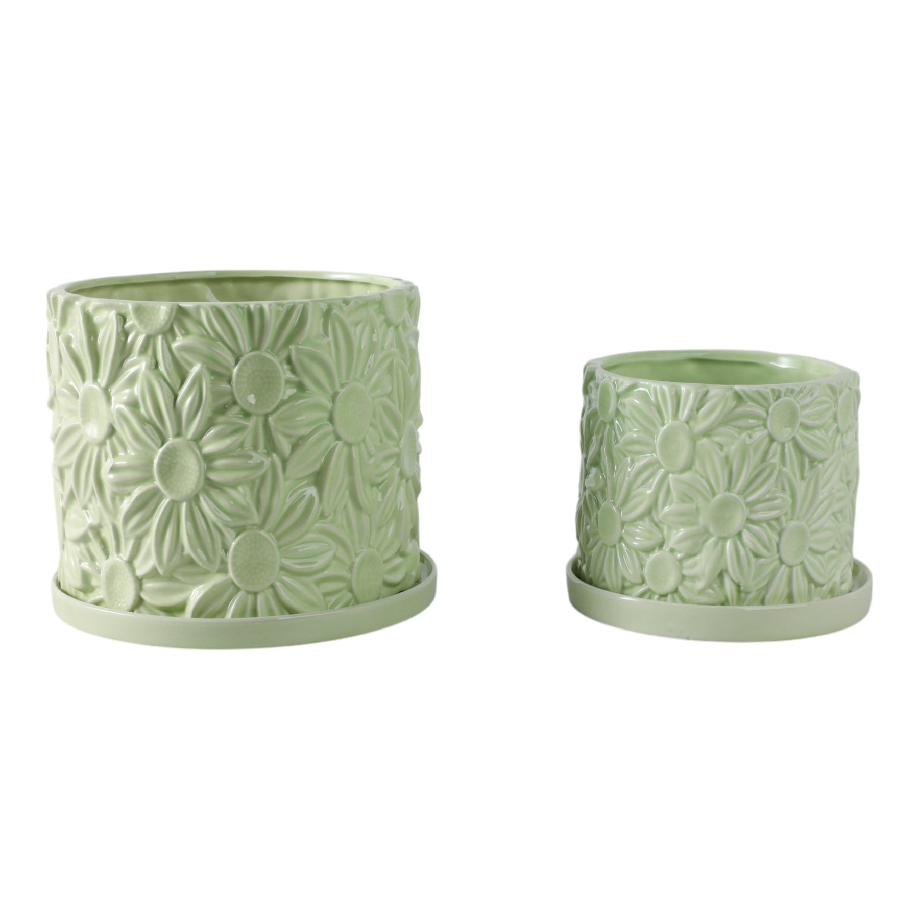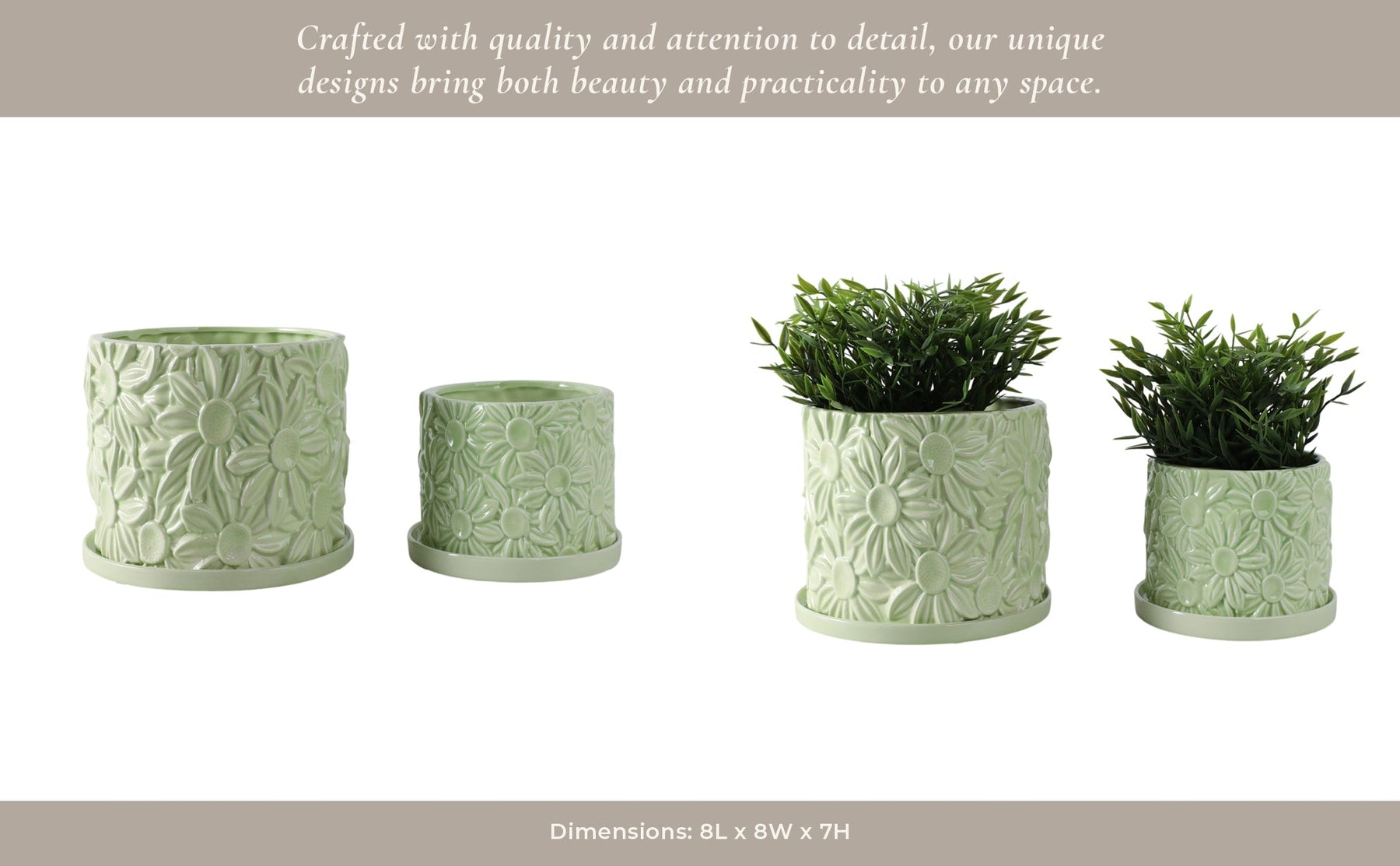 S/2 6/8" Daisy Flower Planter, Green - Al Rugaib Furniture