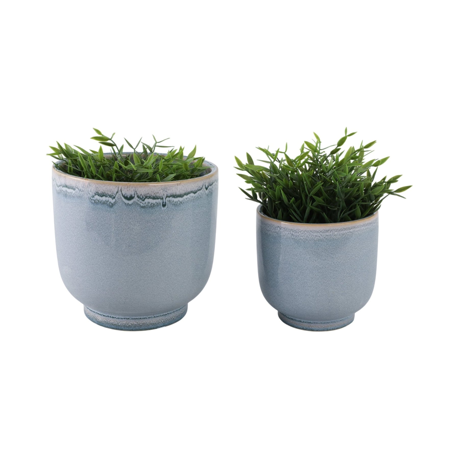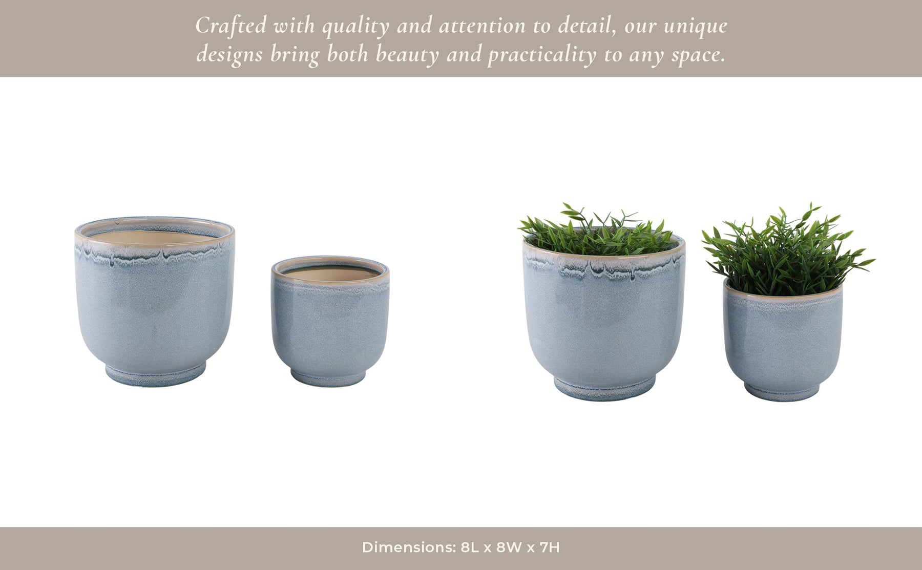 S/2 6/8" Reactive Glazed Planters, Blue - Al Rugaib Furniture