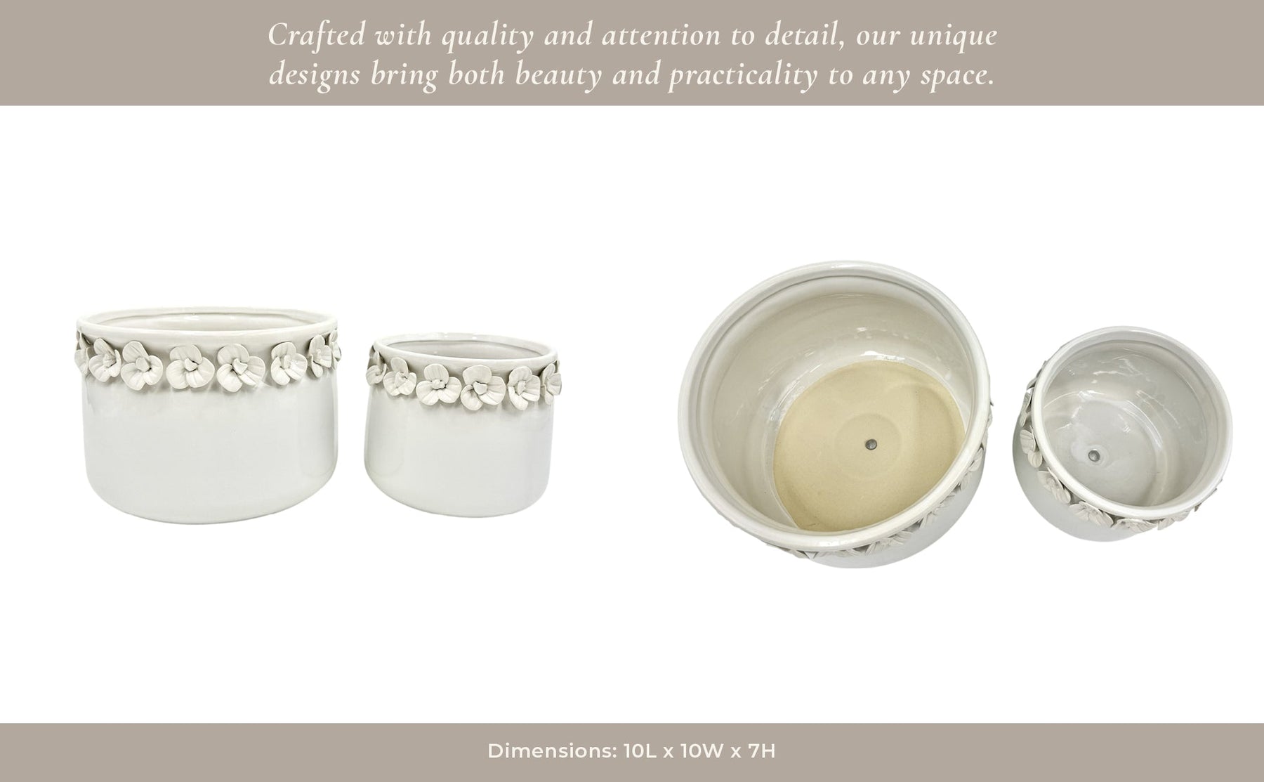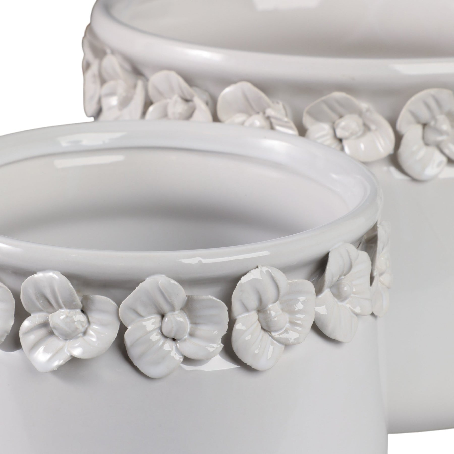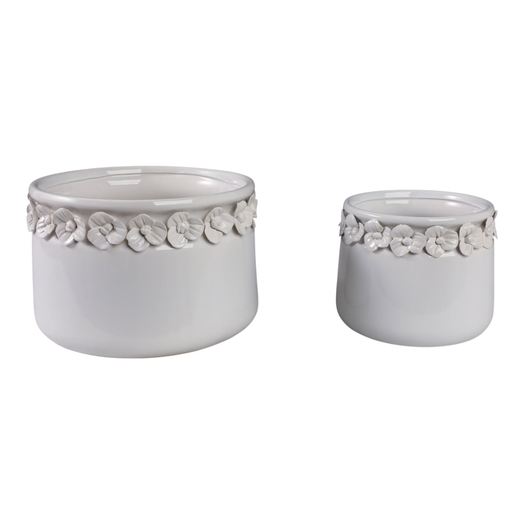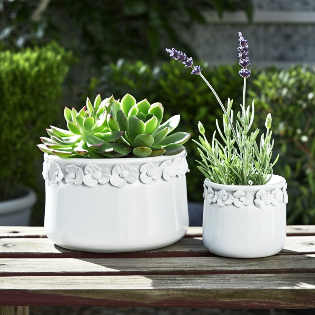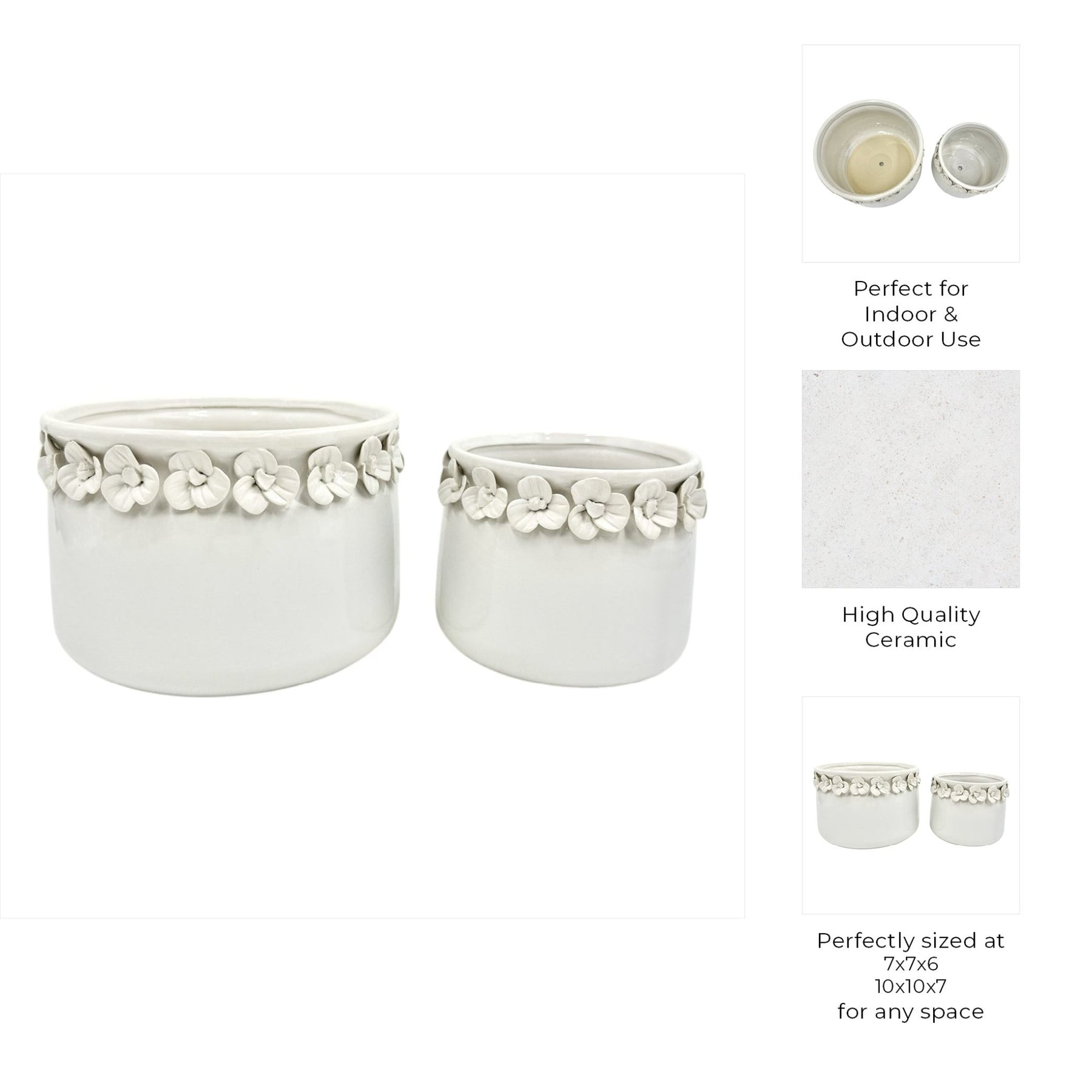 S/2 7/10" FLORAL APPLIQUE PLANTER, WHITE - Al Rugaib Furniture
