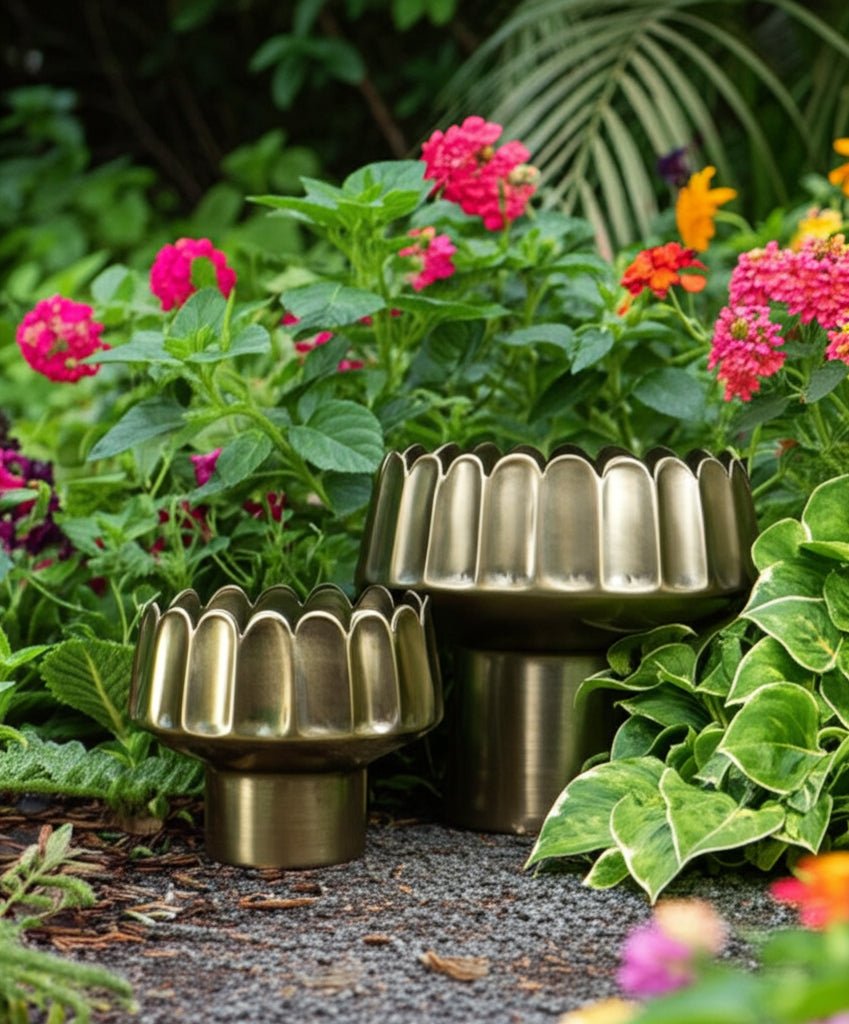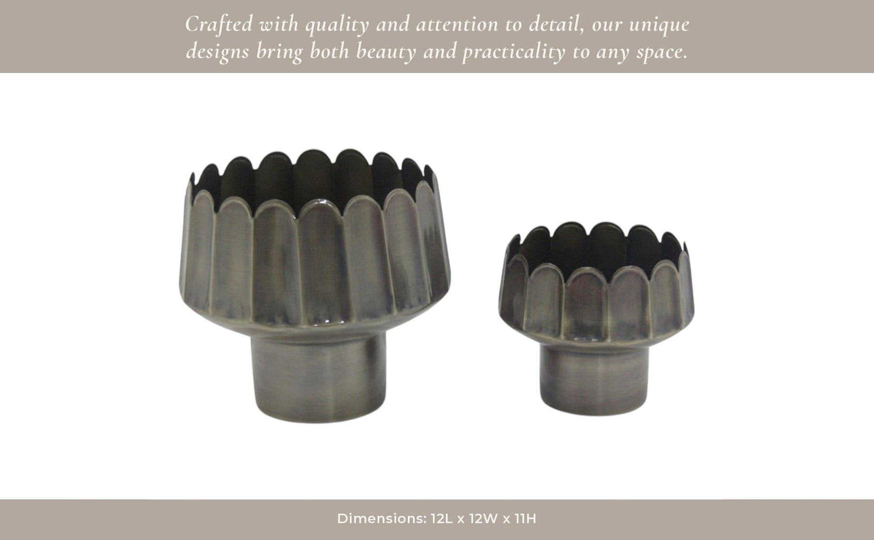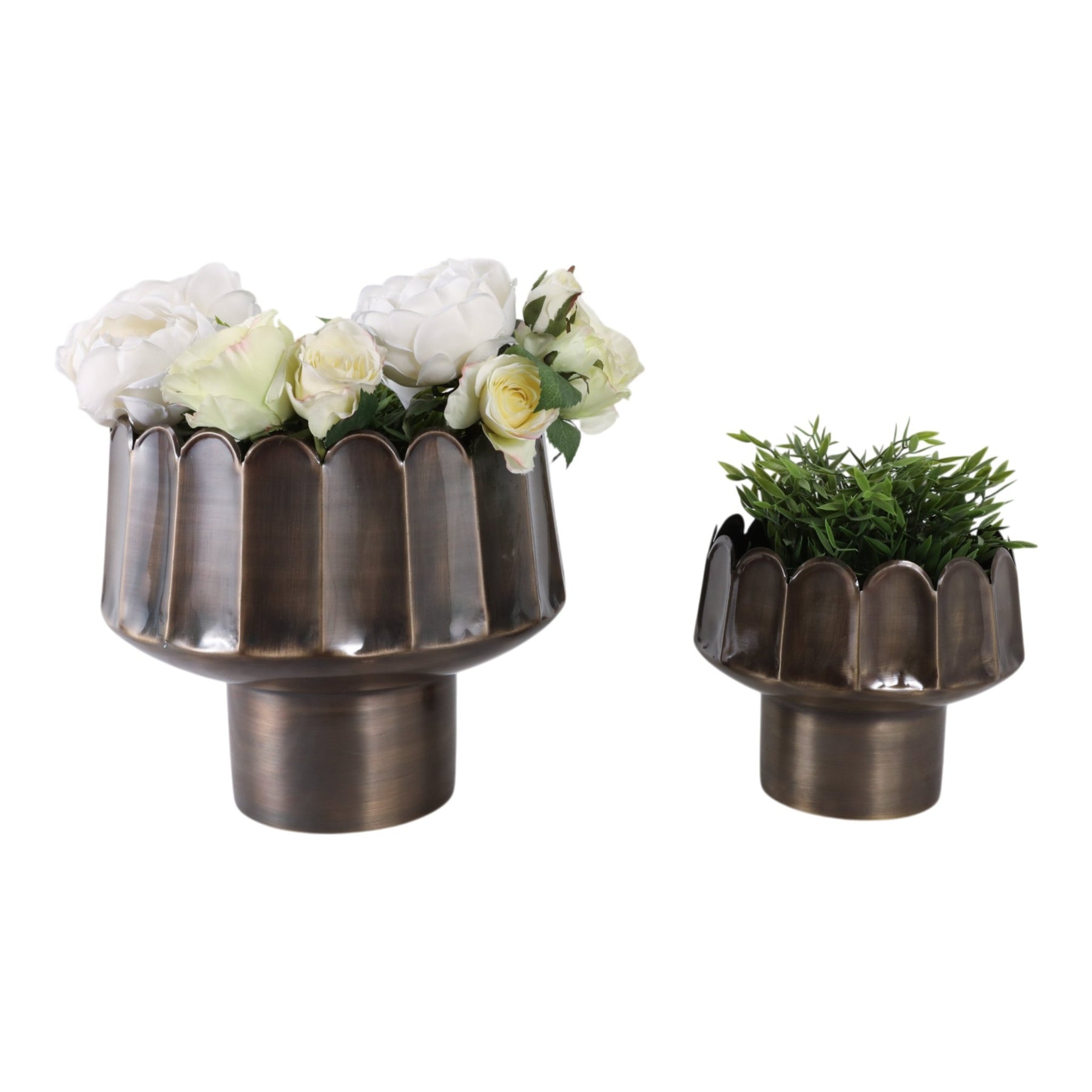 S/2 9/12" Scalloped Pedestal Planter, Antique Bras