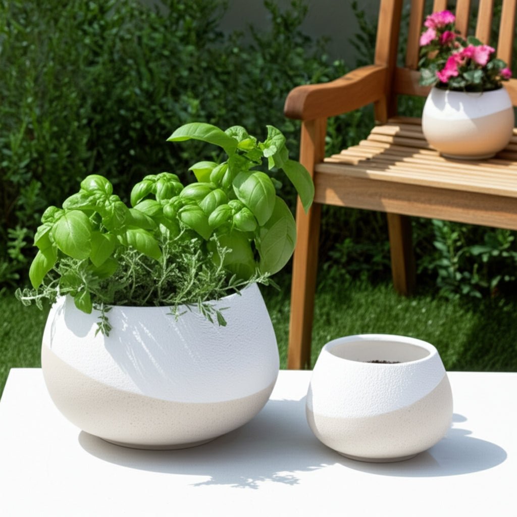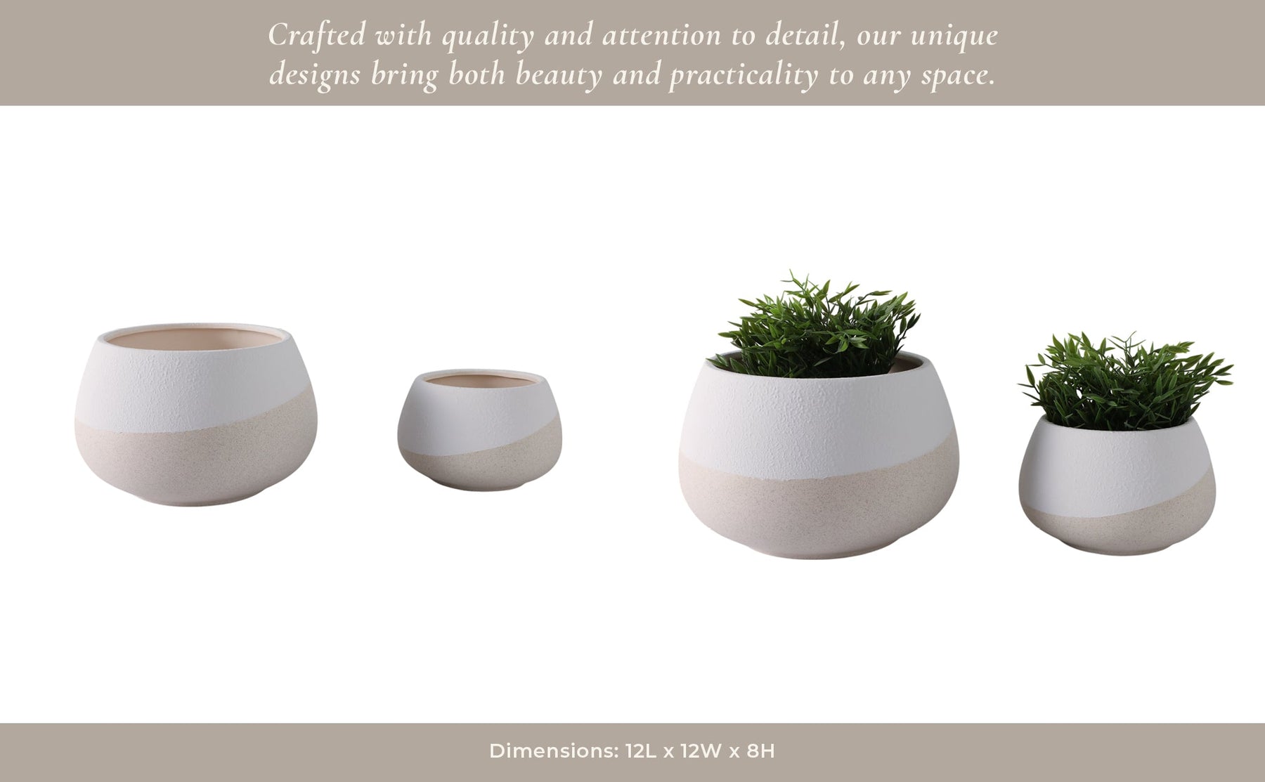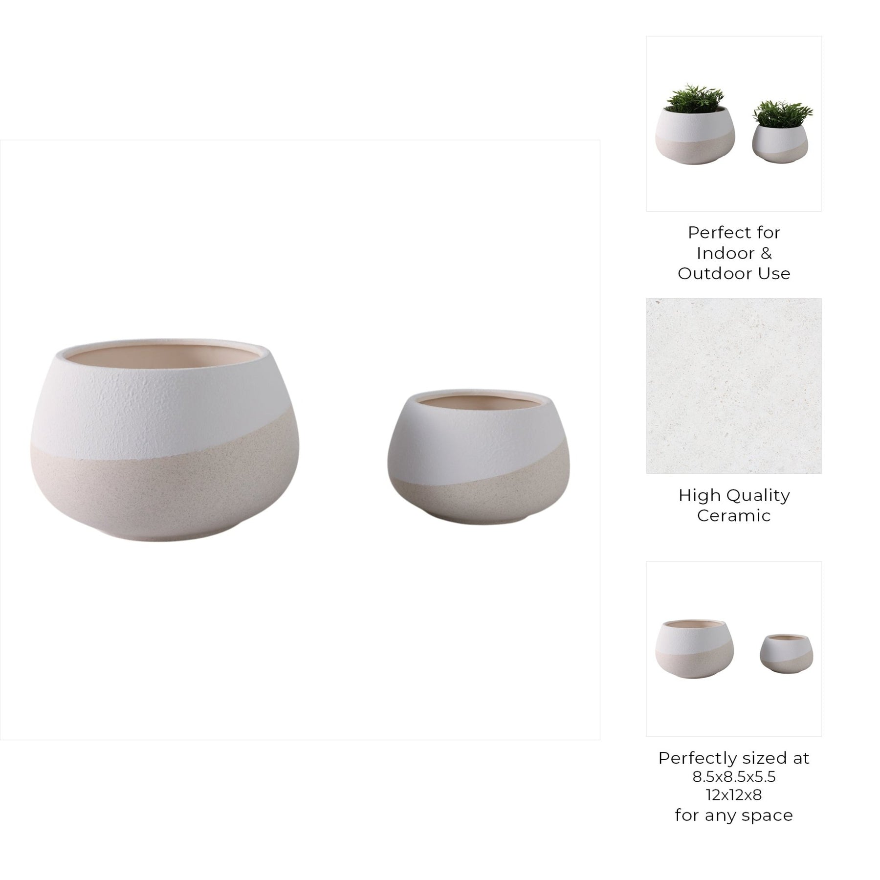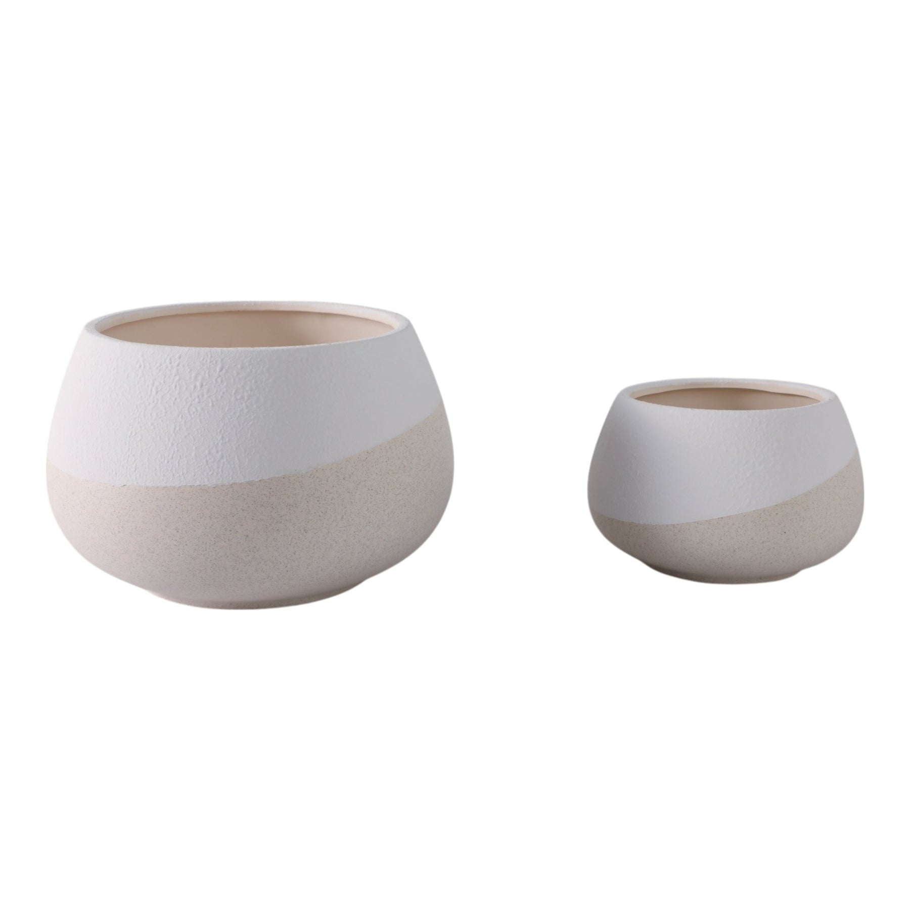 S/2 9/12" Textured Half-dipped Planters,wht/tan
