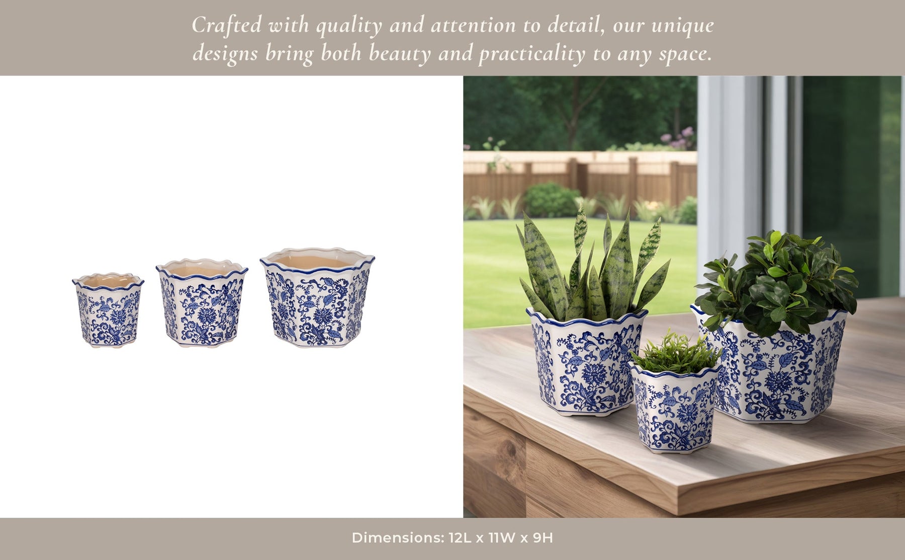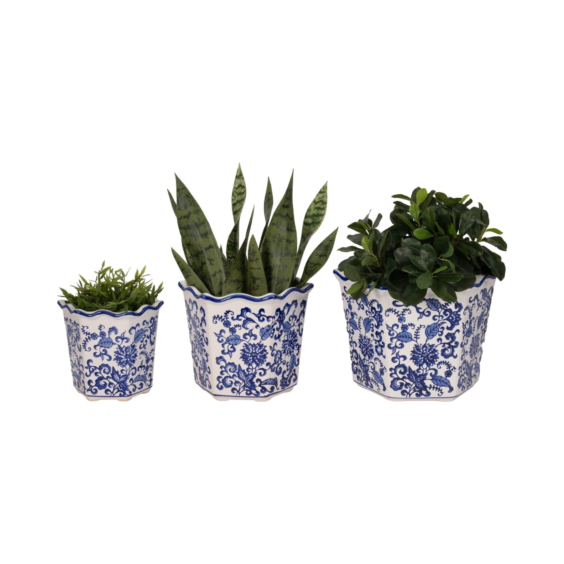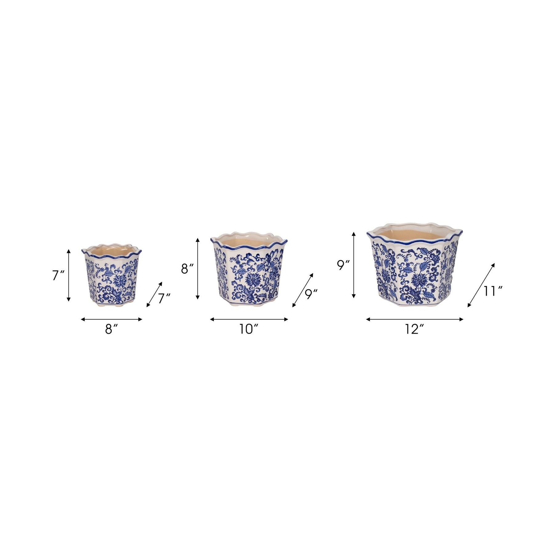 S/3 8/10/12" Chinoiserie Dahlia Planters, Blue/whi
