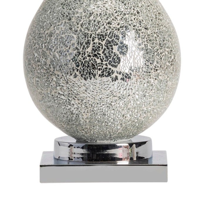 Ascott Silver Table Lamp 32.5''Ht.,Resin&Metal Mirror Mosic&Chrome Finish 17 x 17 x 11 White Silk Shade