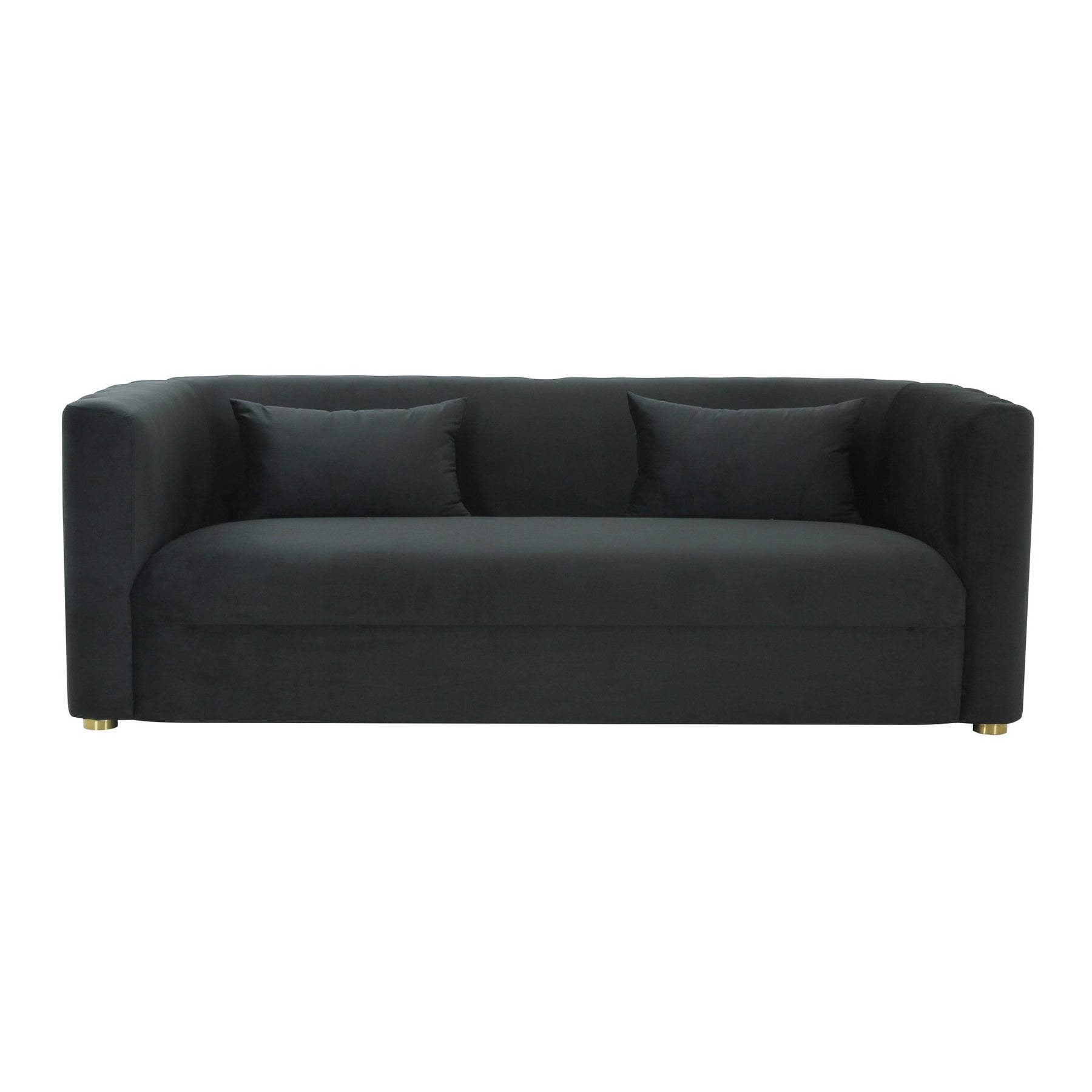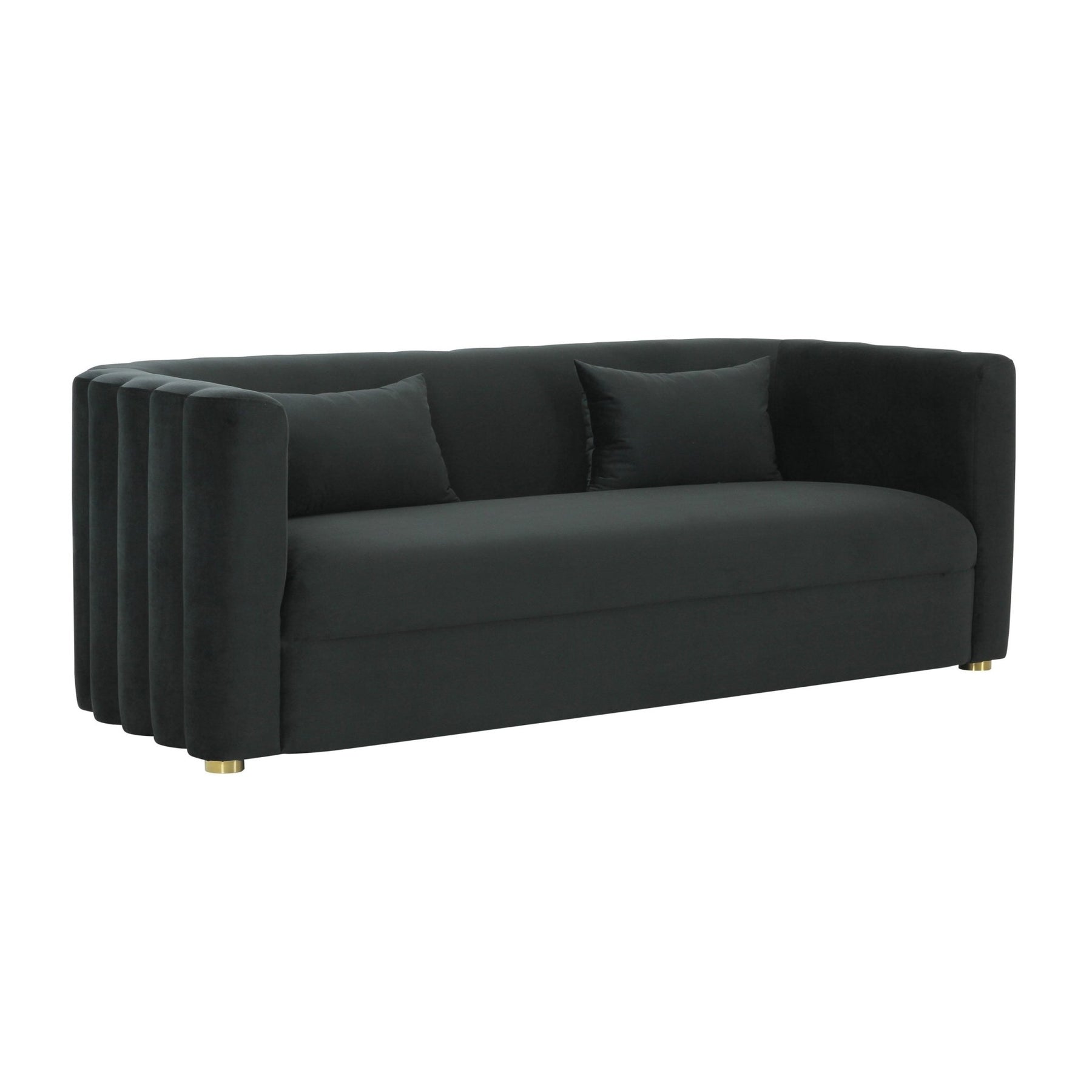 Graceful and eye-catching, the Callie Sofa is the epitome of modern glamour. Its curved silhouette, scalloped tufted back and beautiful stainless steel legs, add character and style to any room. Available in multiple color options.