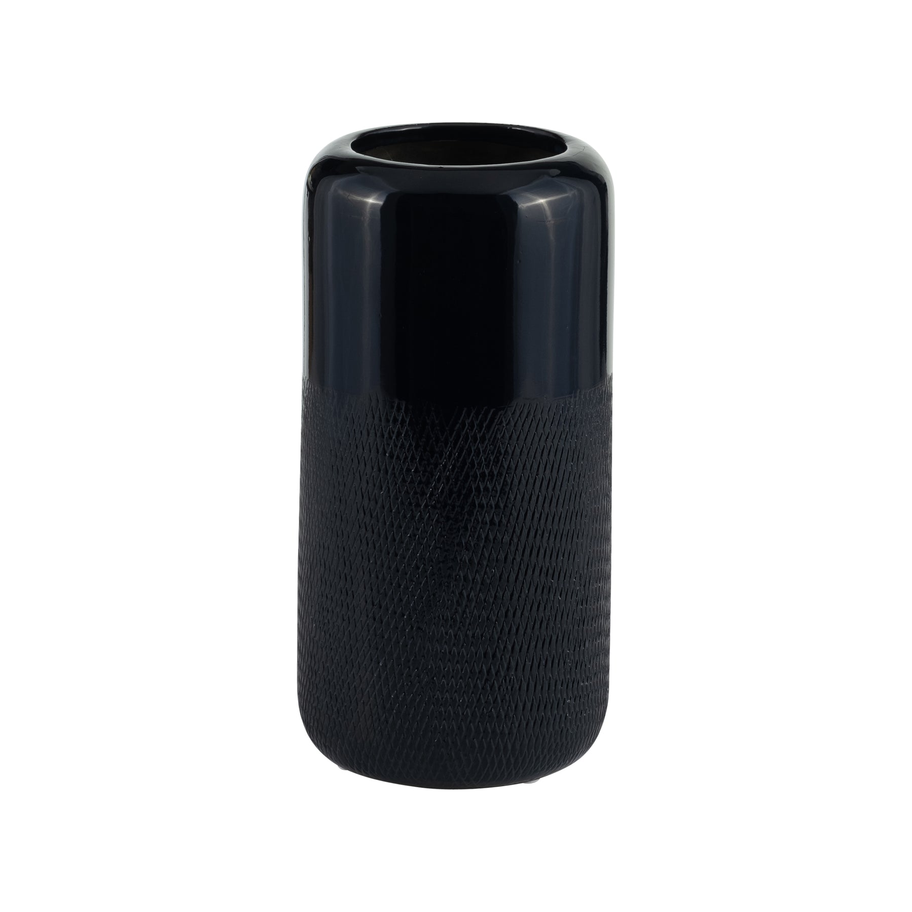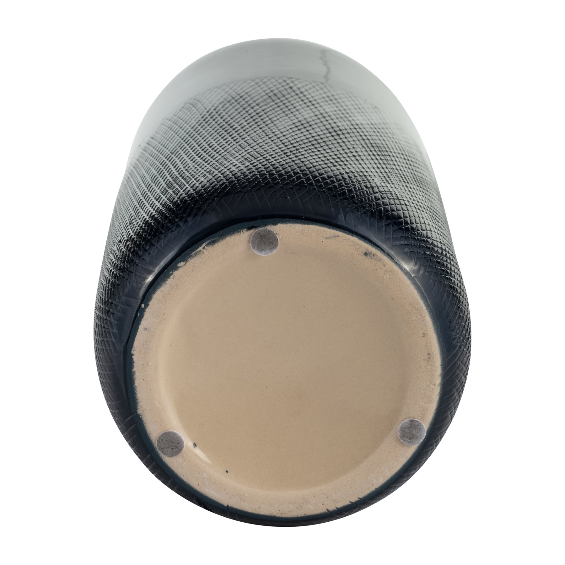 CER, 10"H GROOVED VASE, NAVY BLUE