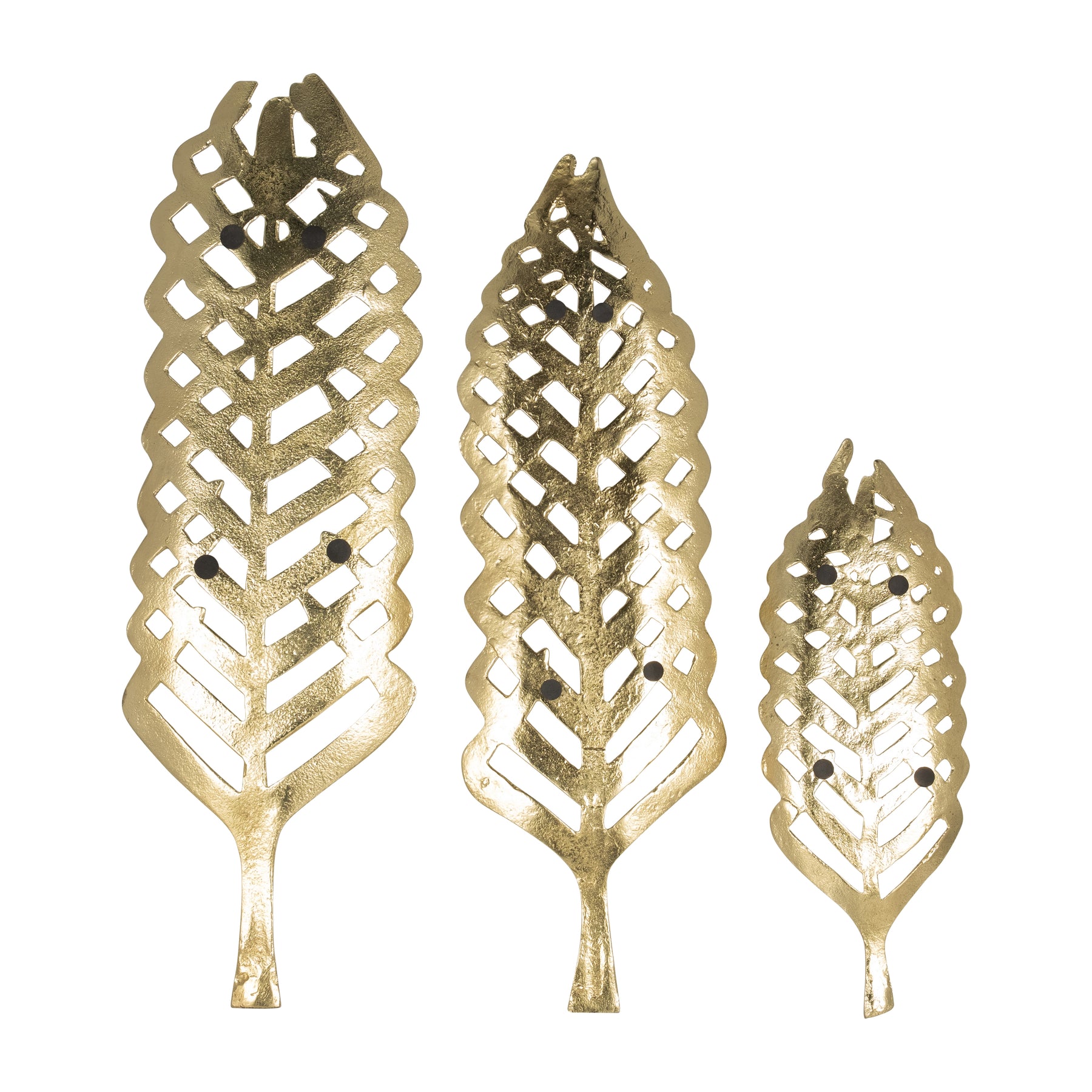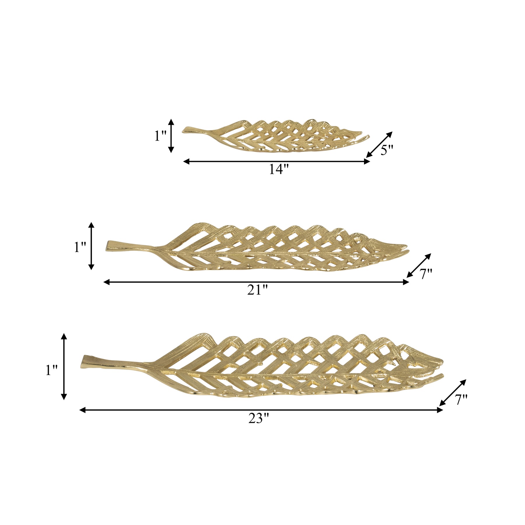 METAL, S/3 14/21/23"L OPEN CUT LEAF PLATE, GOLD