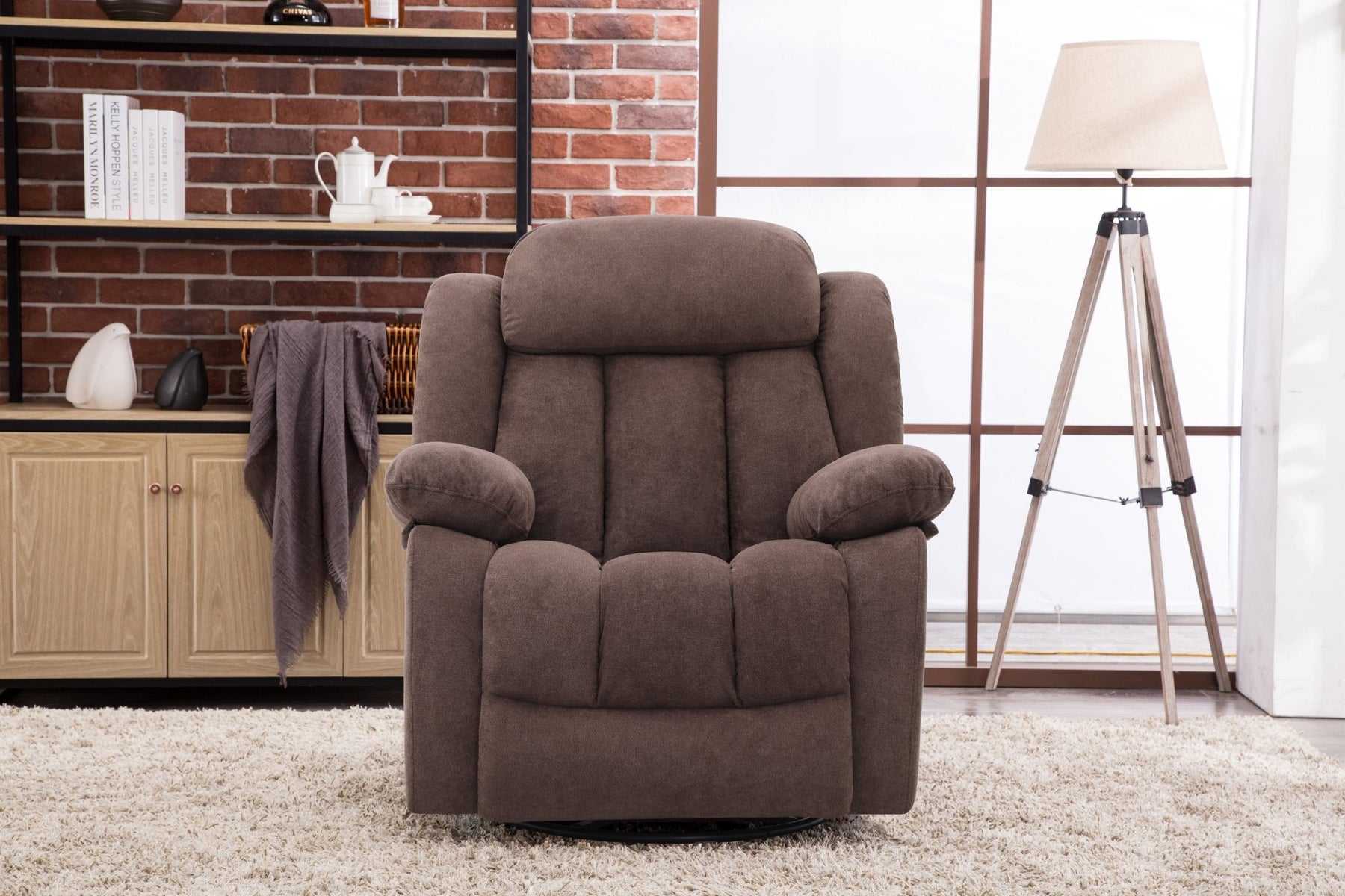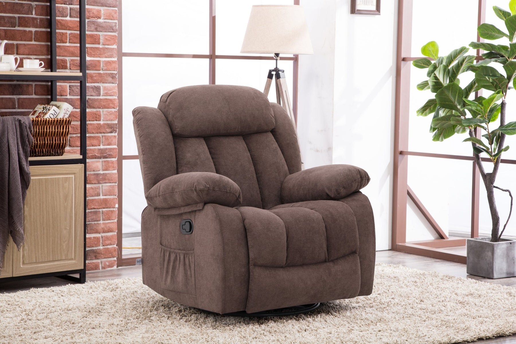 Experience the pinnacle of comfort and functionality with the Lena Brown Swivel Recliner with Glider. This sophisticated piece seamlessly combines a smooth swivel base with gliding motion, allowing you to find your perfect position with ease. The rich brown upholstery complements any décor while the reclining mechanism provides exceptional support for relaxation. Ideal for living rooms, home theaters, or reading nooks, the Lena delivers both style and ergonomic excellence. Its durable construction ensures years of reliable comfort, making it an investment in your home's leisure experience.