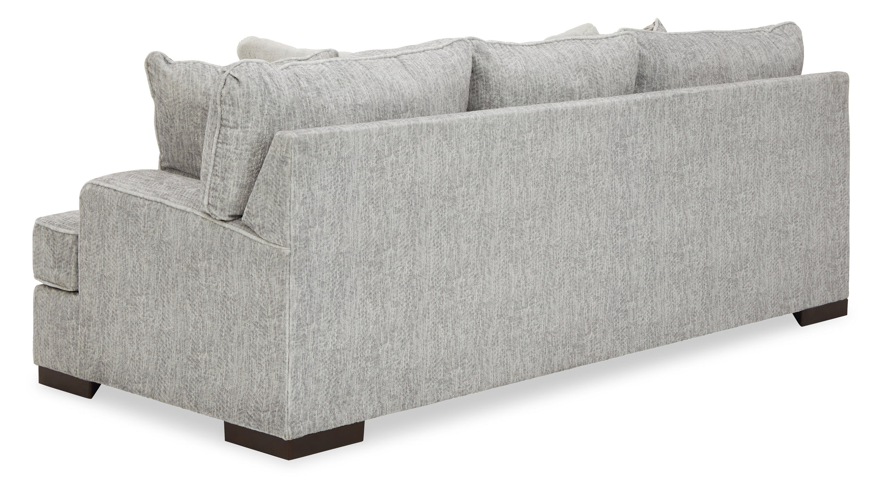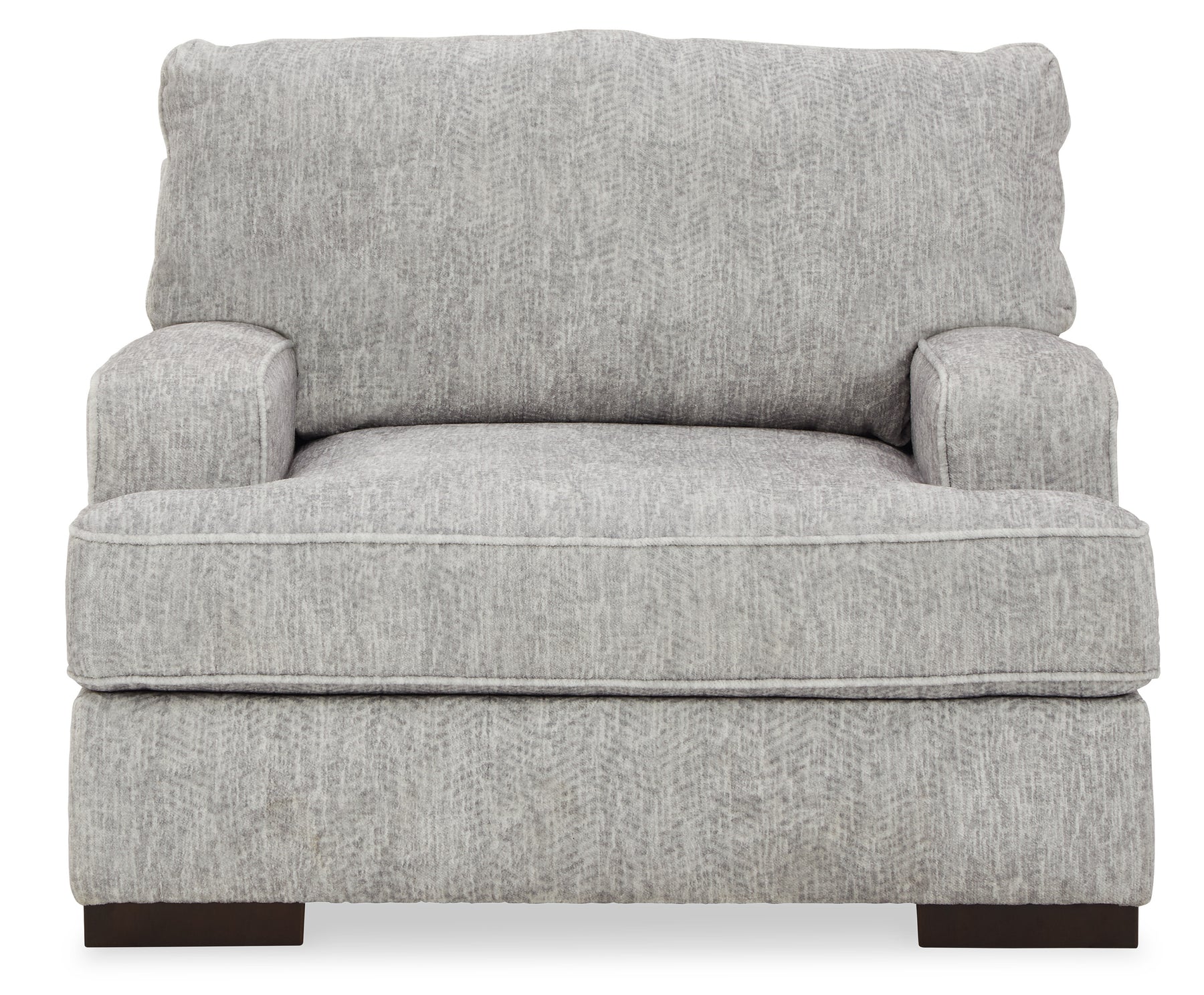 An indulgent choice with deep seats crafted for cloud-like softness, this designer living room set is the ideal merger of modern flair and classic staying power. If you love a touch of texture, you’re sure to appreciate this collection’s gorgeous gray upholstery with subtle chevron effect. Posh toss pillows layered over the loose back cushions perfect the richly relaxed aesthetic.