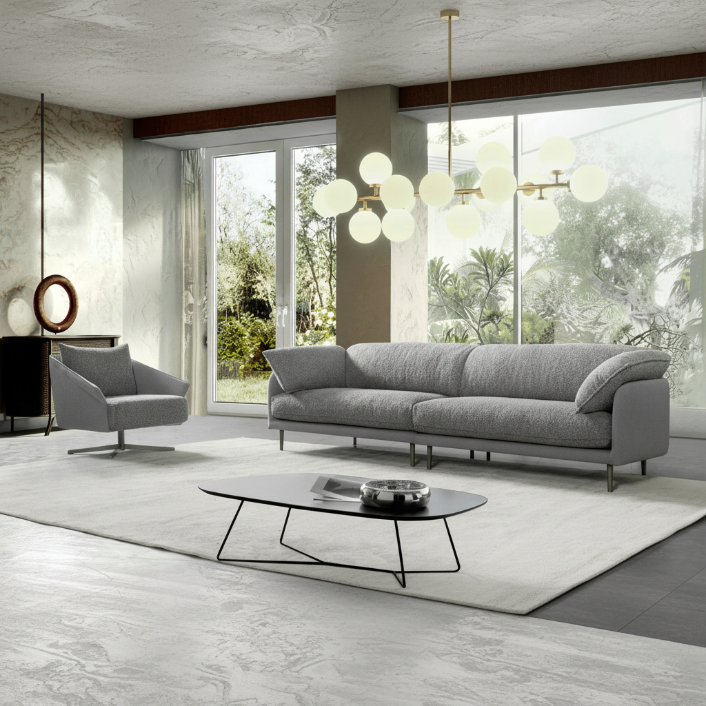 Ahad Grey Boucle Sofa Set - Al Rugaib Furniture