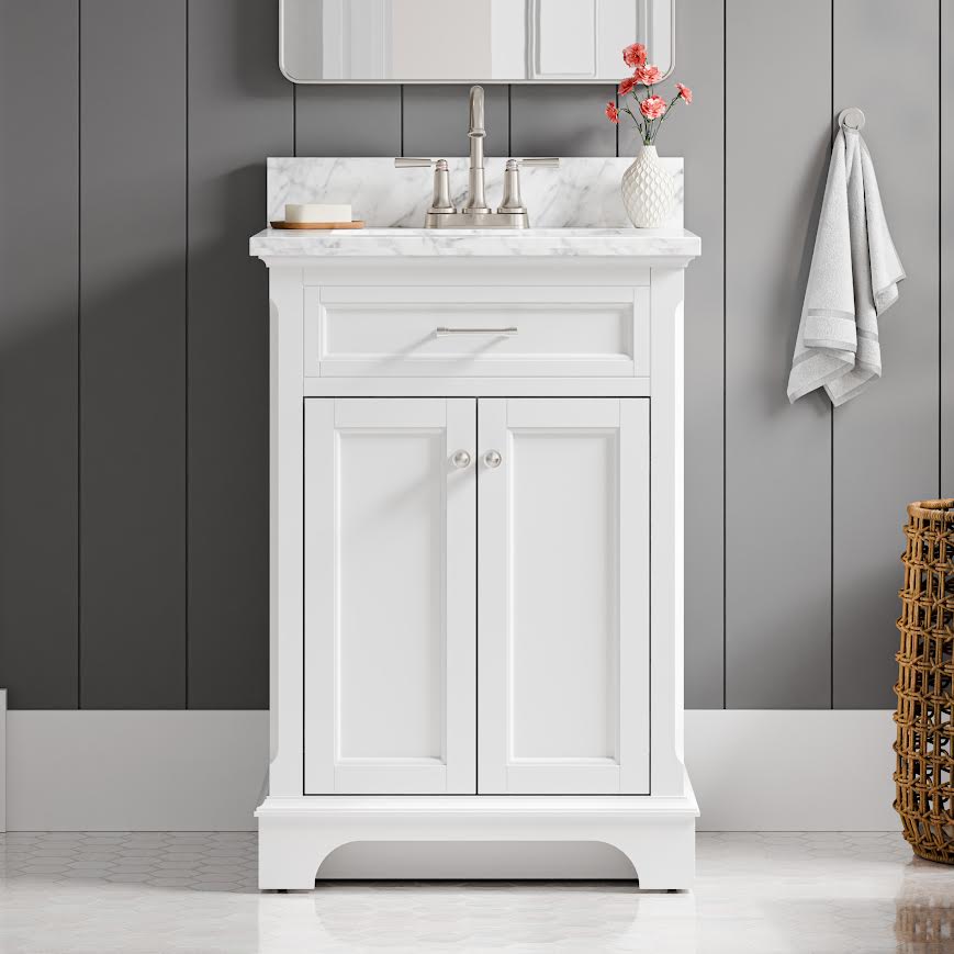 Roveland 24-in White Undermount Bathroom Vanity with Natural Carrara Marble Top