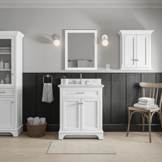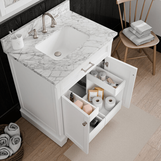 Roveland 30-in White Undermount Bathroom Vanity with Natural Carrara Marble Top