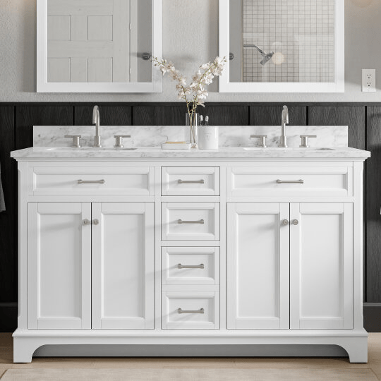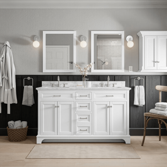 Roveland 60 - in White Undermount Bathroom Vanity with Natural Carrara Marble Top - Al Rugaib Furniture