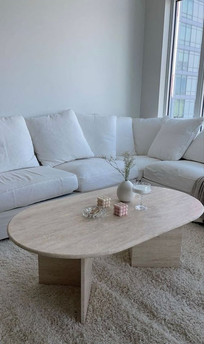 Royal | PearlPulse Marble Coffee Table in Natural Travertine Marble - Beige - 120x60x45 cm