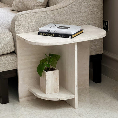 Royal | IvoryIvy Marble Accent Table in Natural Travertine Marble - Beige - 60x50x50 cm