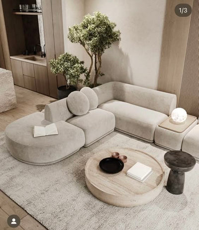Royal | EtherealEdge Marble Coffee Table with Natural Travertine Surface & Stone Bases - Iqbala White - 100x100x42 cm
