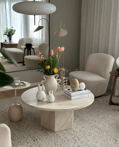 Royal | OpulenceOrb Marble Coffee Table in Natural Travertine Marble - Beige - 100x100x45 cm