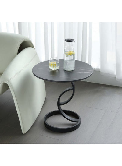 Royal | SycamoreSymphony Side Table in Metal & Marble Alternative - Black - 40x55 cm