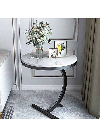 Royal | CedarSway Side Table in Iron & Marble Wood - White & Black - 45x55 cm