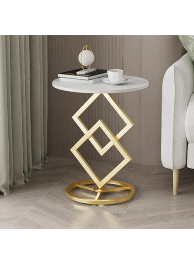 رويال | طاولات جانبية تيك تريل برخام موغلا وقاعدة ستيل - أبيض وذهبي - 50/46×60/56 سم