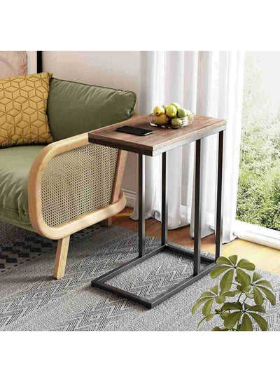 Royal | WillowWharf Side Table with Engineered Wood Base & Iron Legs - Brown & Black - 48×30×59 cm