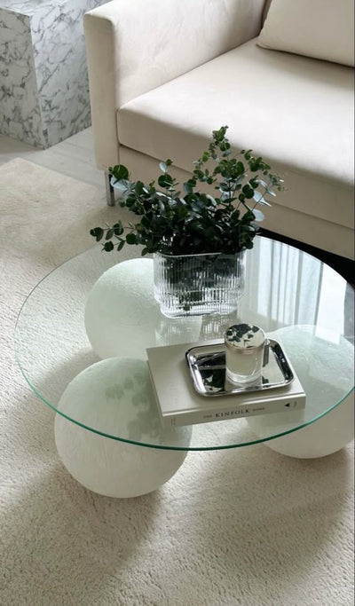 Royal | RadiantRise Marble Coffee Table with Natural Stone & Clear Glass - White - 110x110x40 cm