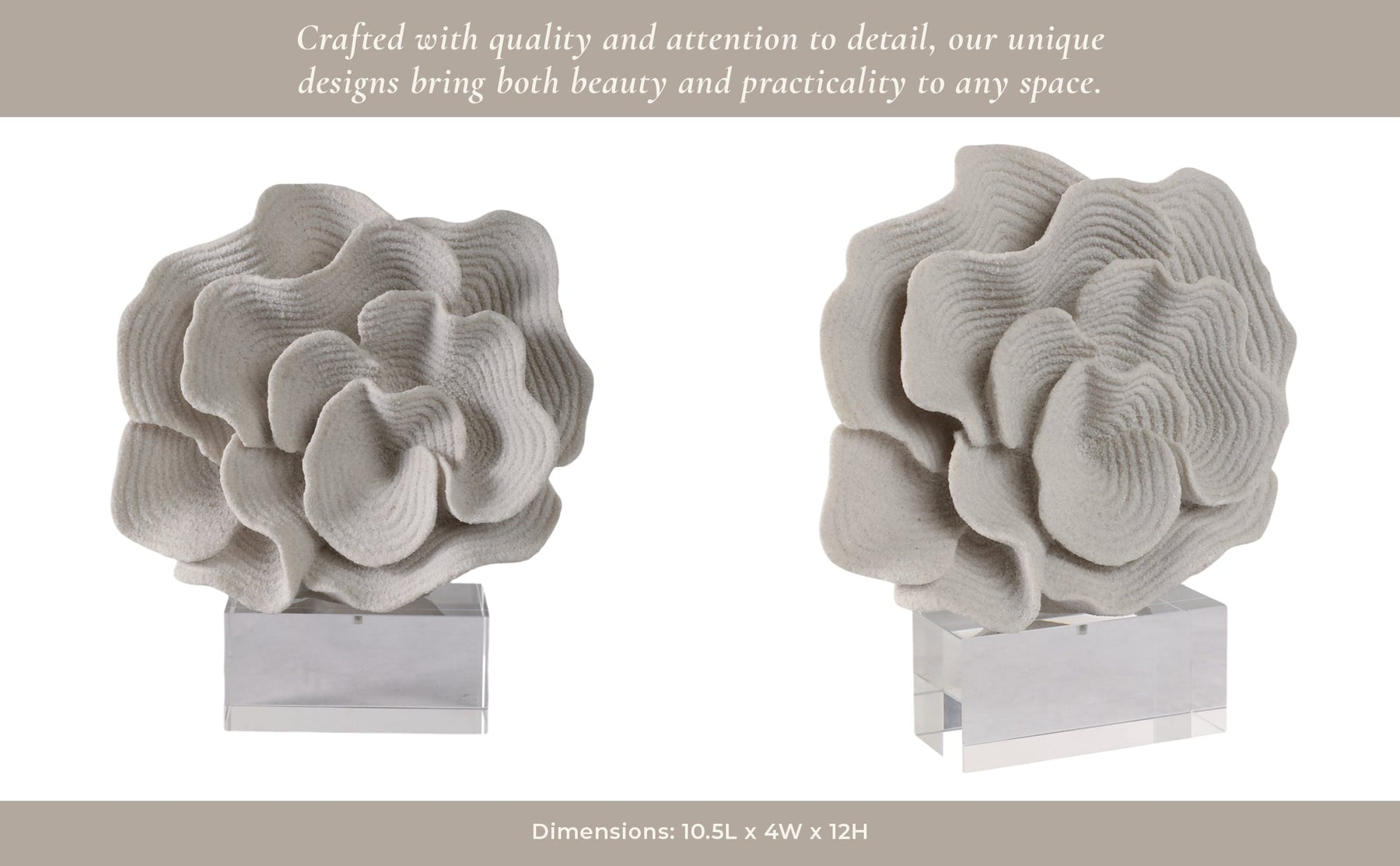 12" Egerton Coral Statuary With Crystal Base, Wht