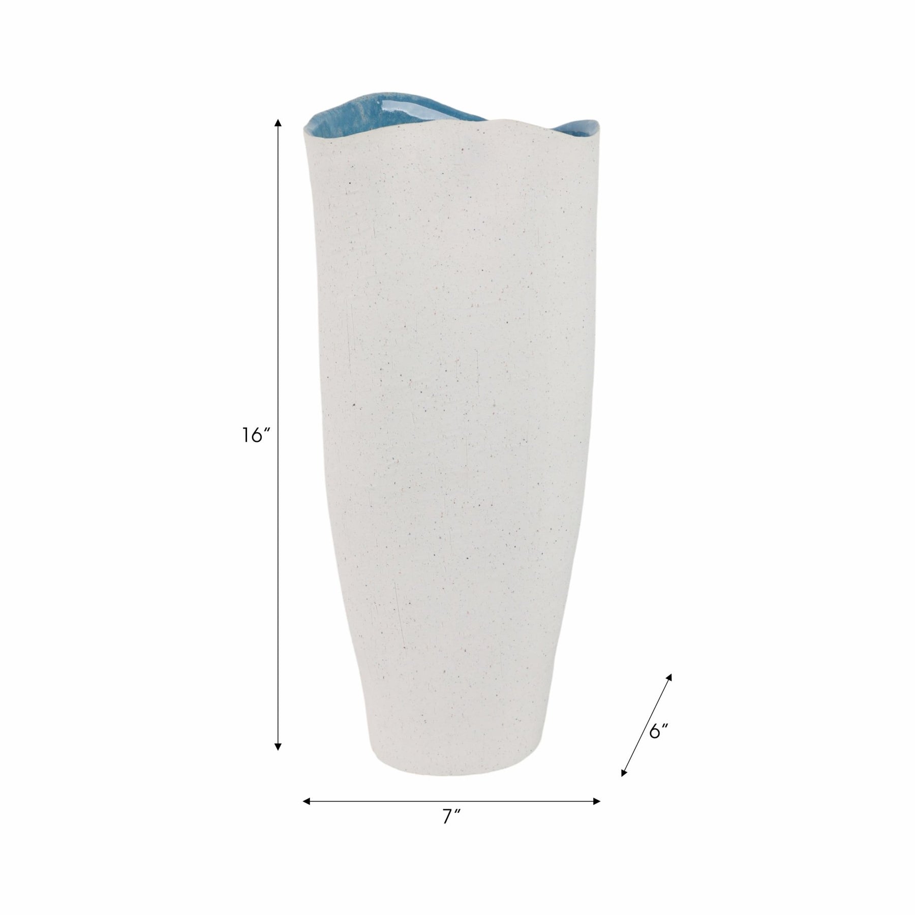 16x7" Textured Organic Vase Reactive Inside, White - Al Rugaib Furniture