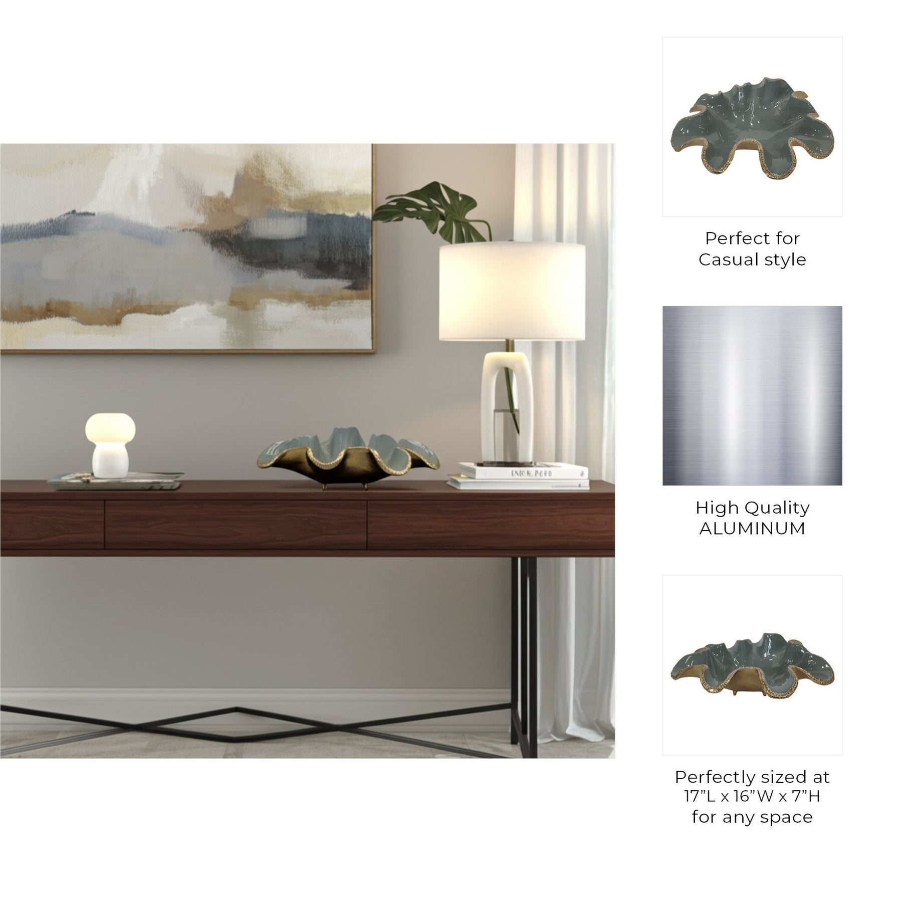 17x7" Gannon Small Aluminum Bowl, Gold - Al Rugaib Furniture