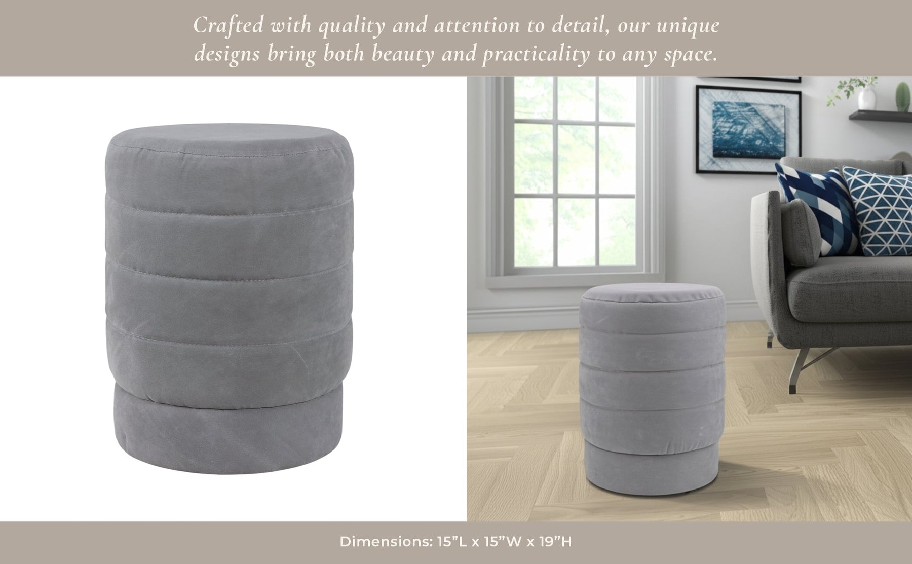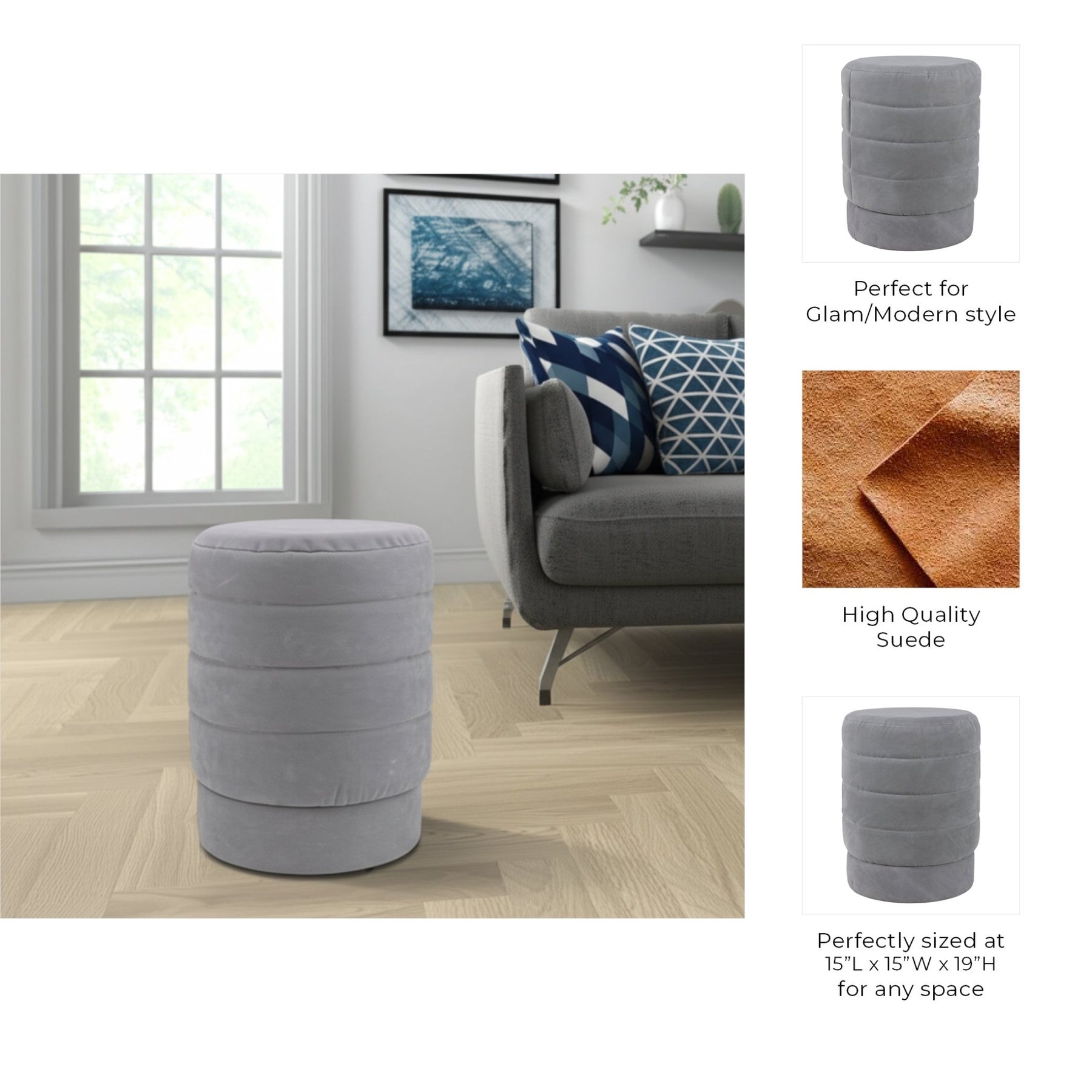 19" Winsor Gray Suede Ottoman Stool - Al Rugaib Furniture