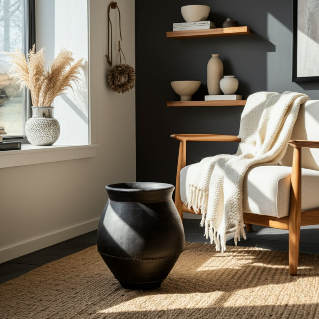 الإناء التقليدي من الطين الأحمر بحجم 20x18 بوصة، عاجي/أسود 20x18 Traditional Terracotta Vase, Ivory/Black