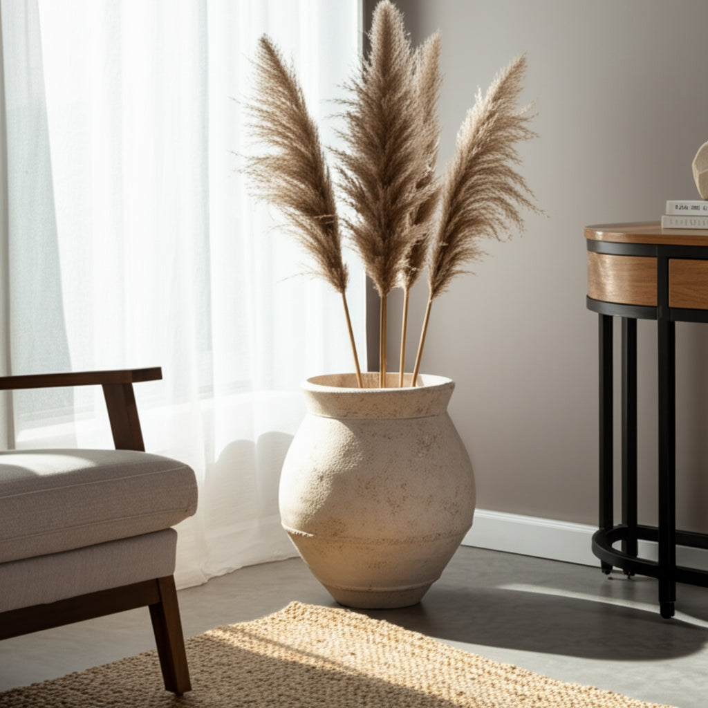 الزهرية التقليدية من الطين المحروق بالأبعاد 20x18 بوصة، باللونين العاجي والأسود 20x18 Traditional Terracotta Vase, Ivory/Black