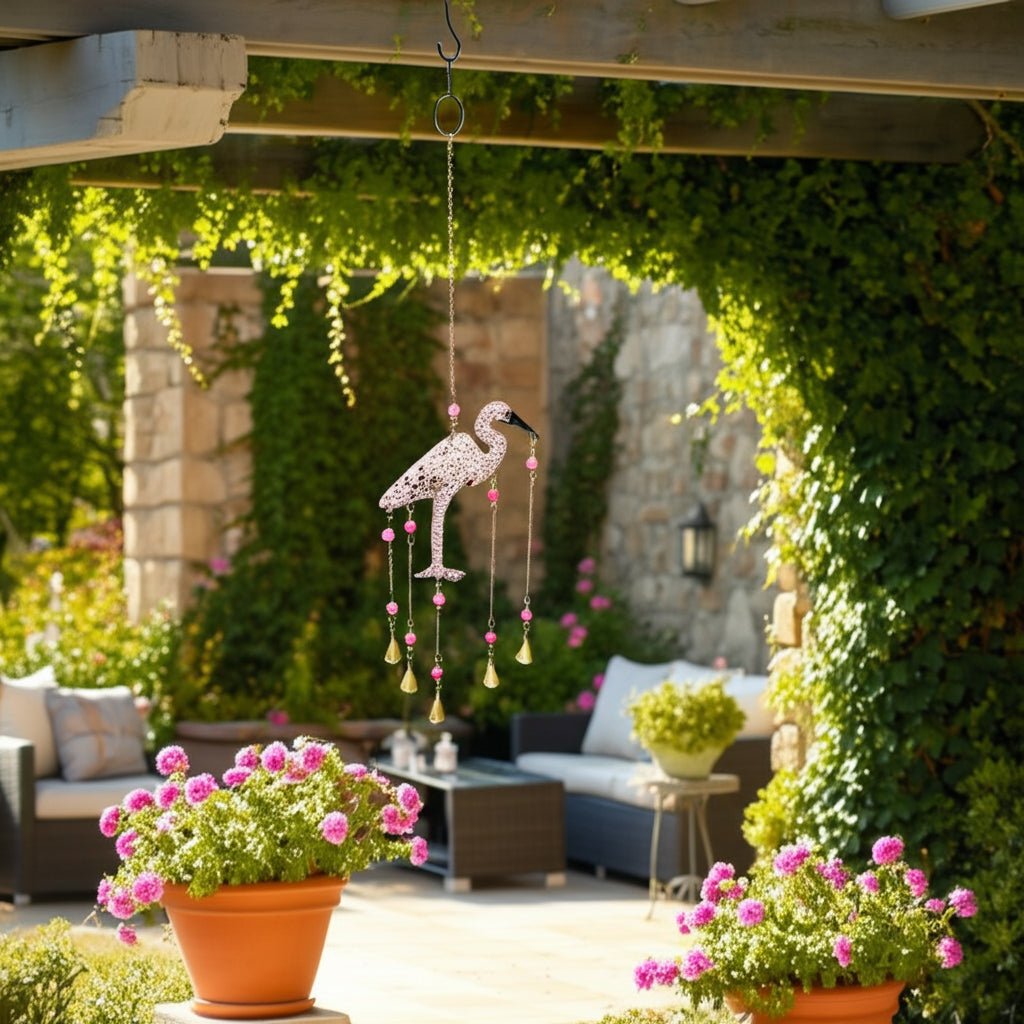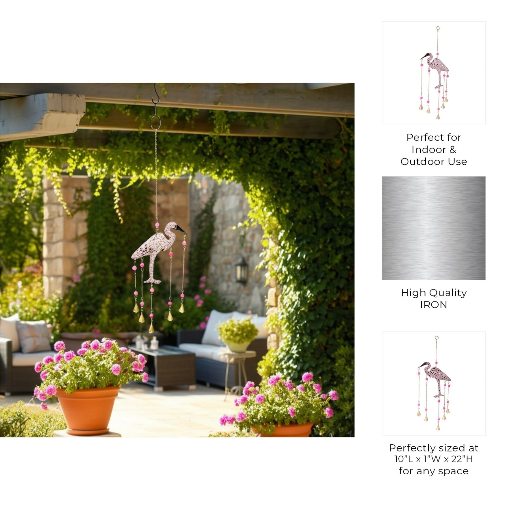22x10" Beaded Mosaic Flamingo Chime, Pink - Al Rugaib Furniture