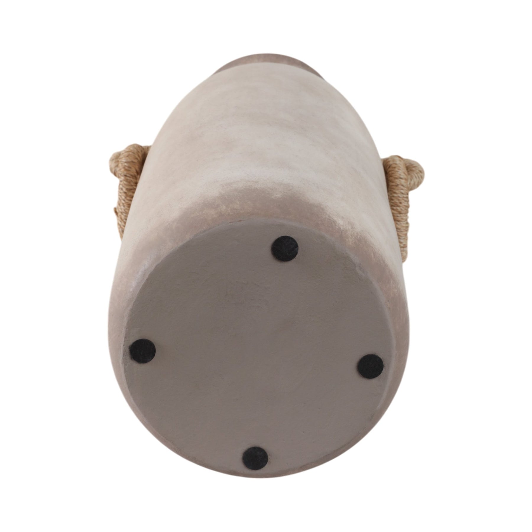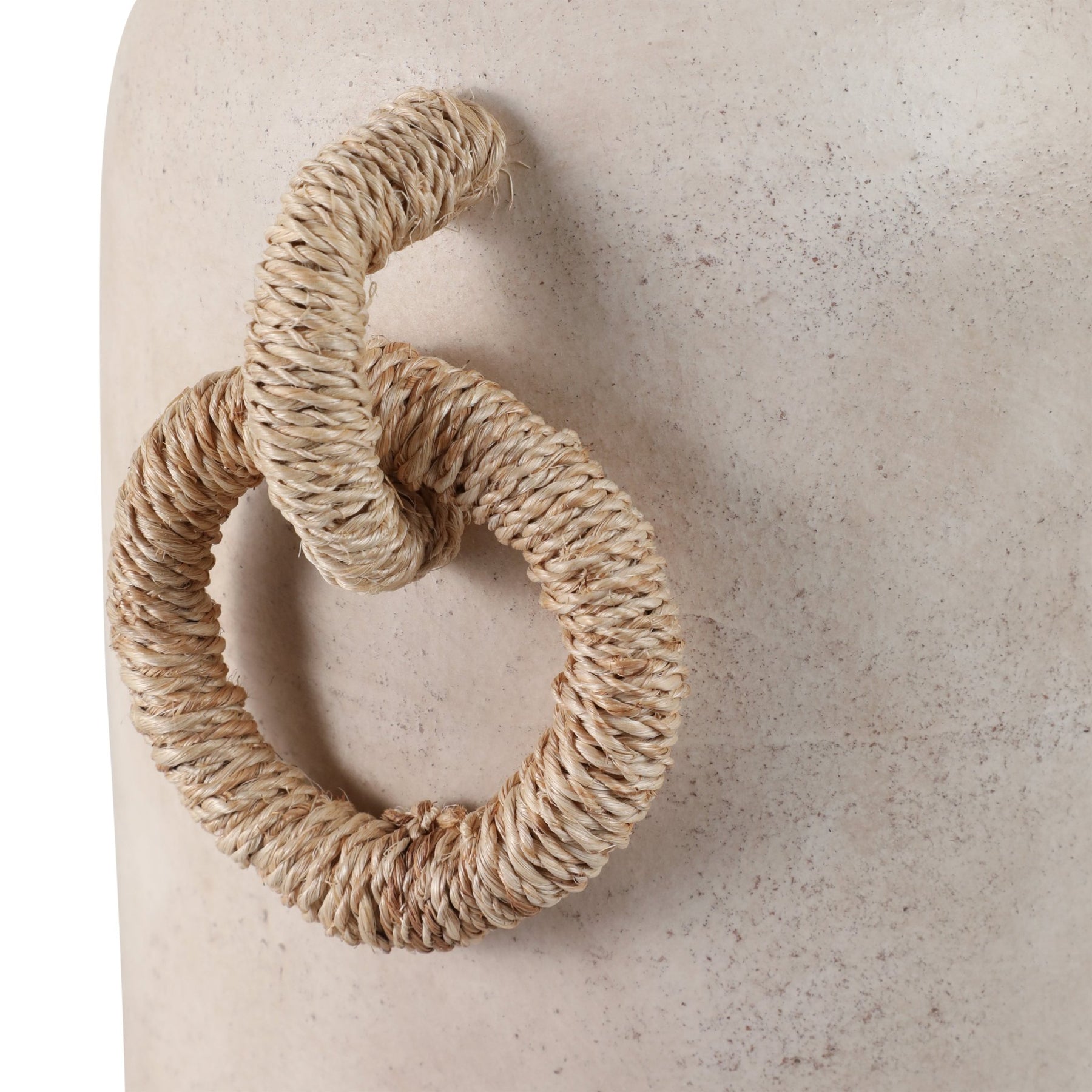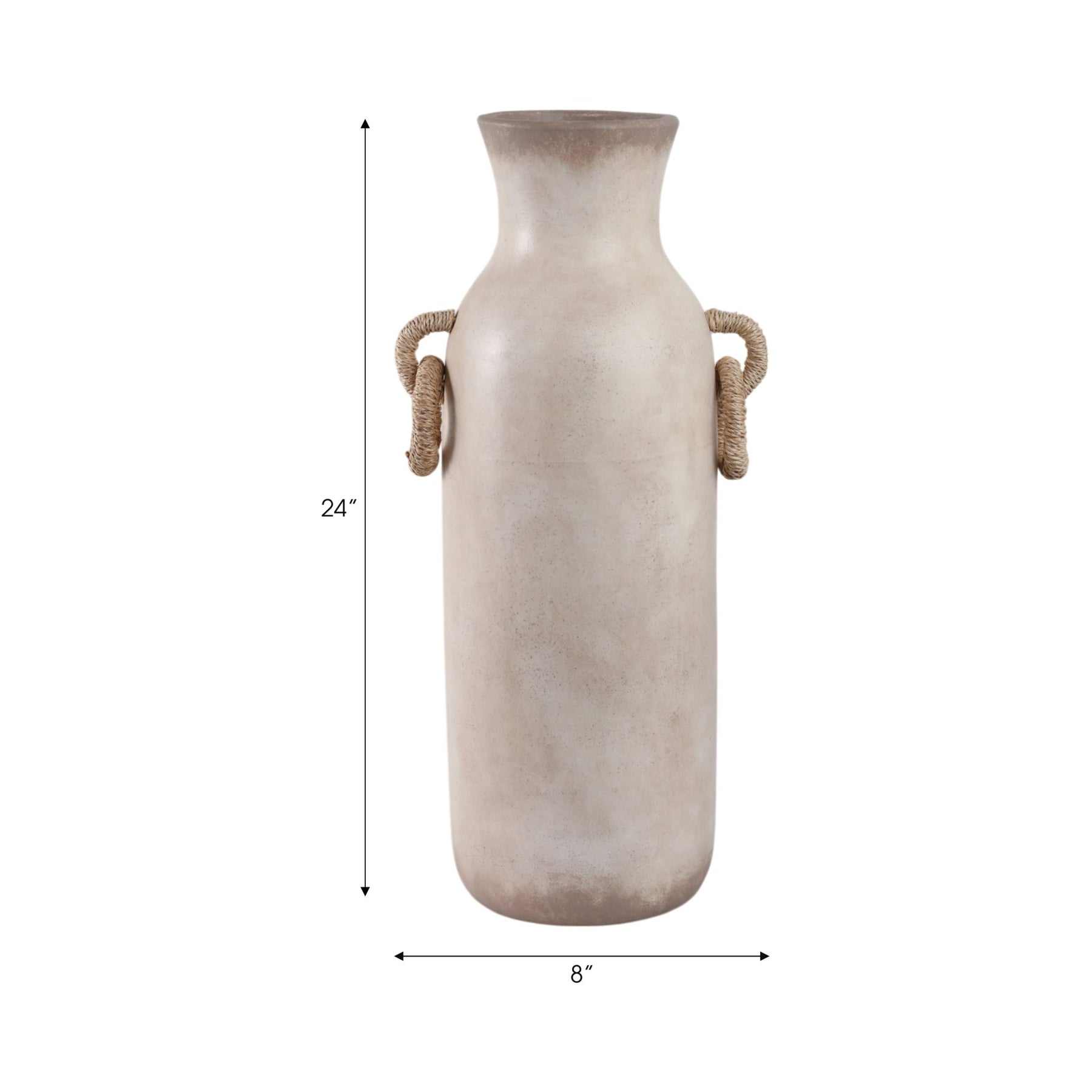 24" Vase With Rattan Handles, Antique White - Al Rugaib Furniture