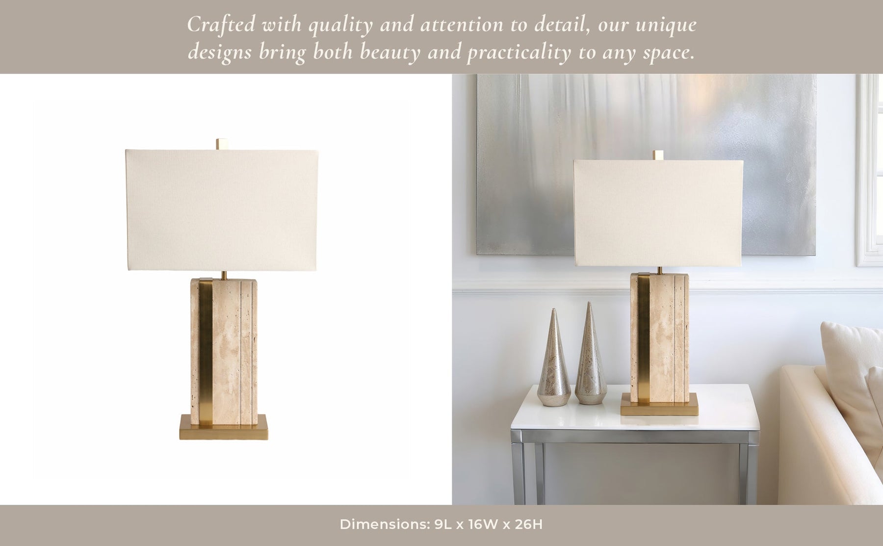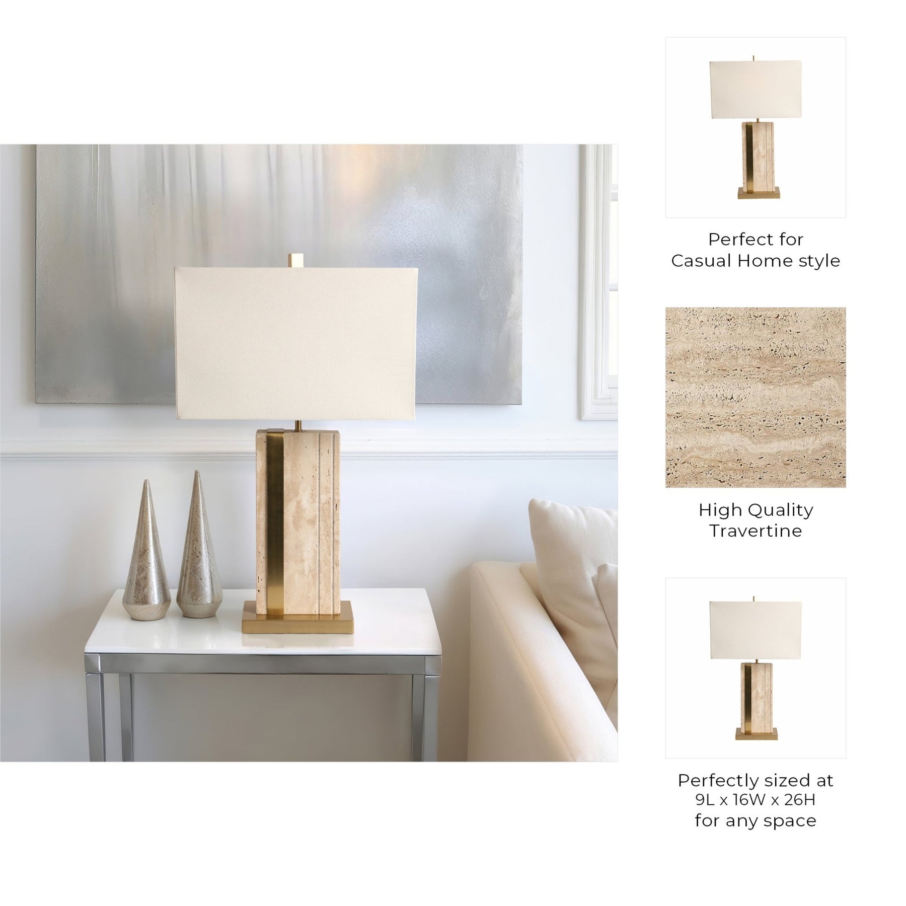 26" Hallberg Travertine Table Lamp, Gold/ivory - Al Rugaib Furniture