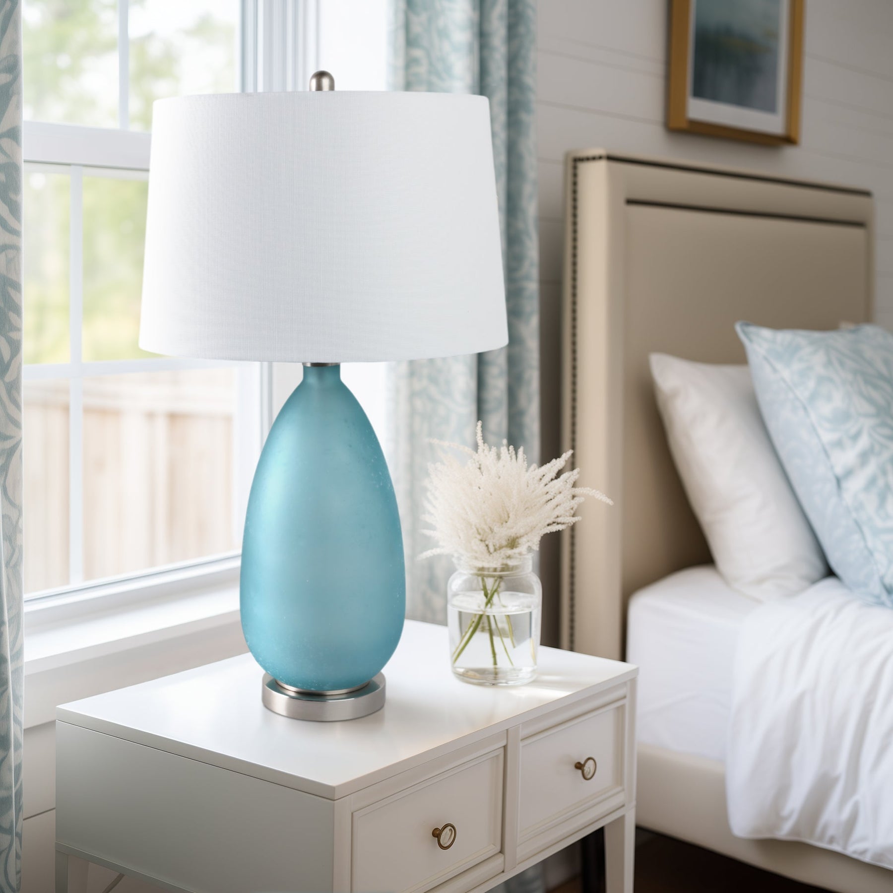 29x17" Frosted Glass Table Lamp, Blue - Al Rugaib Furniture