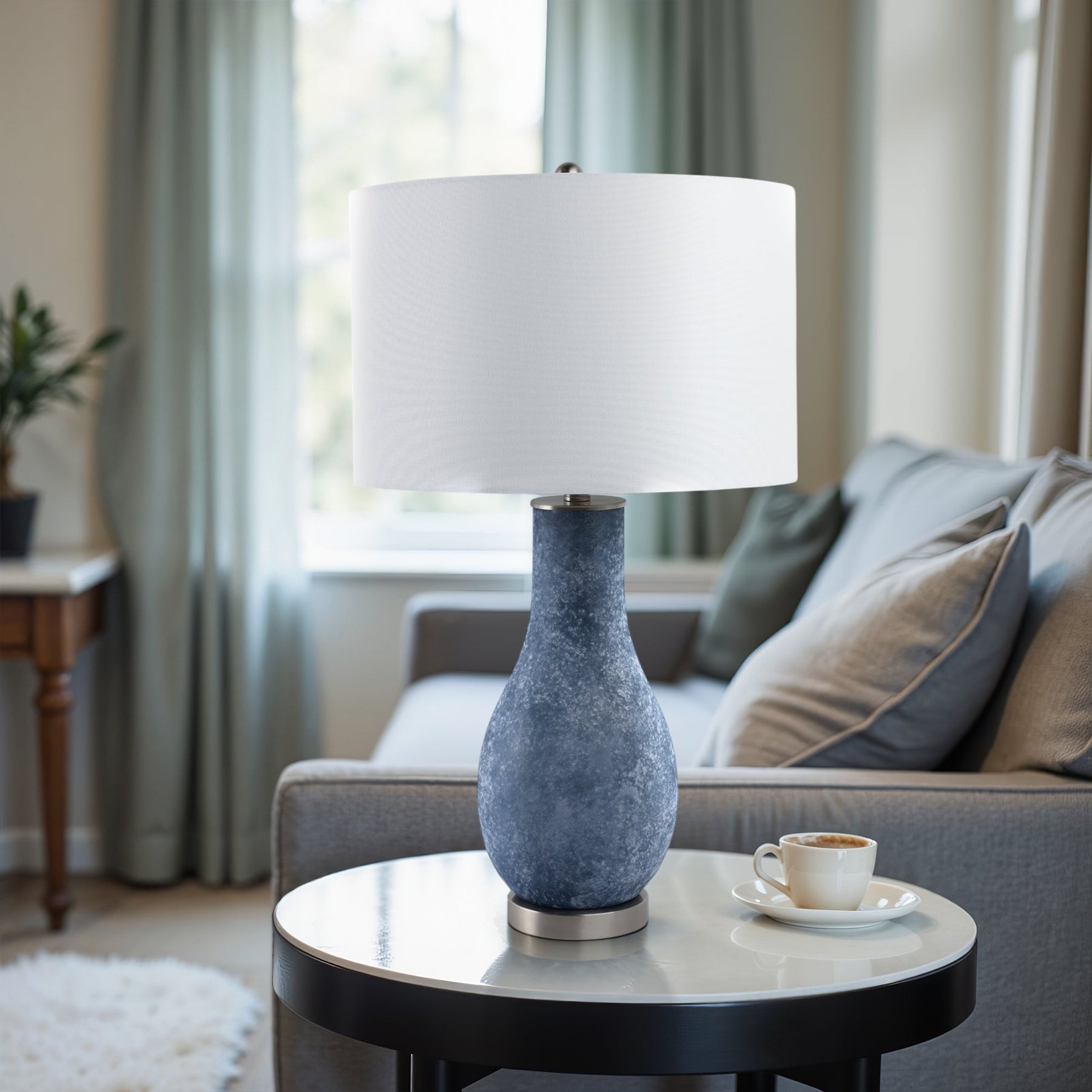 29x17" Frosted Glass Teardrop Table Lamp, Dark Blu - Al Rugaib Furniture