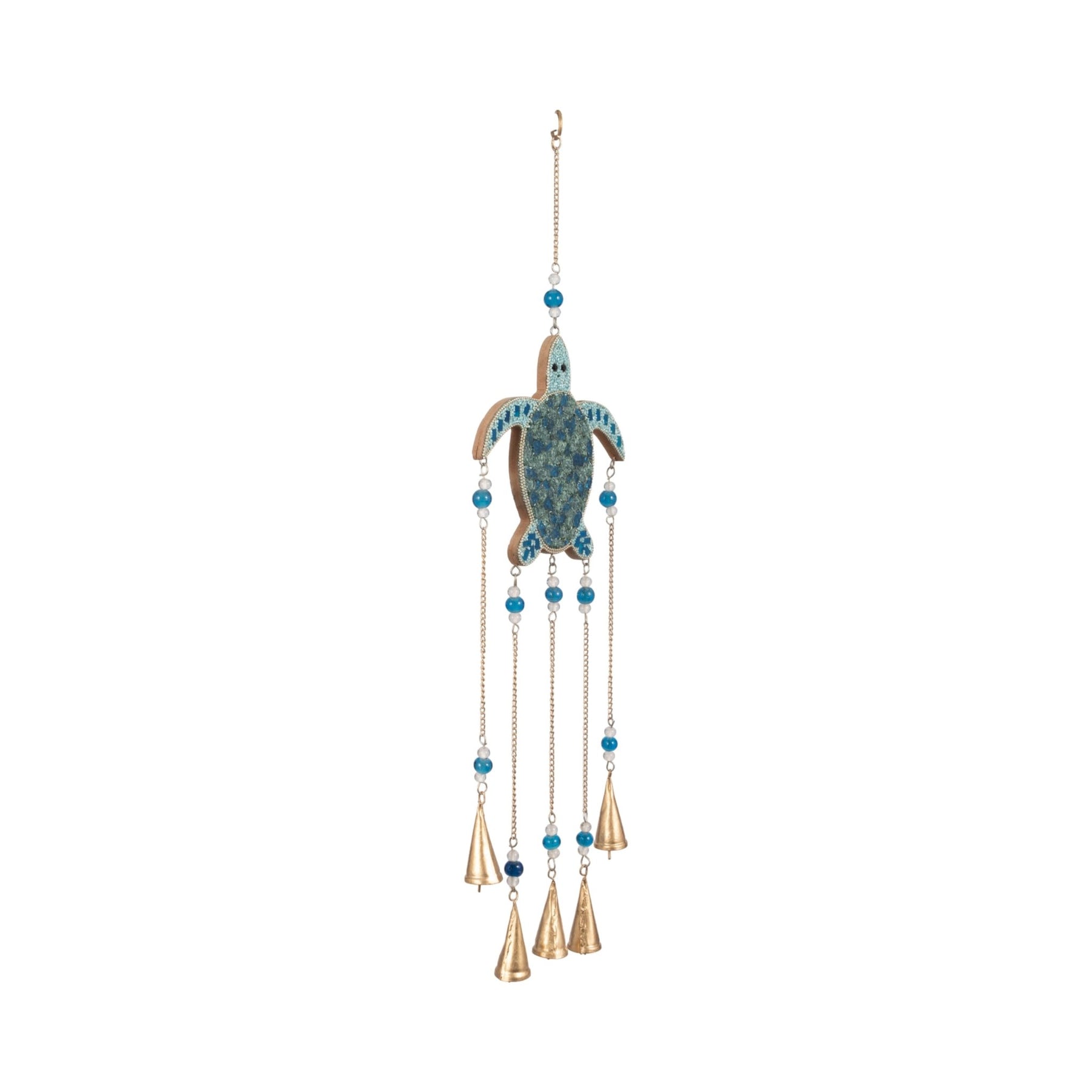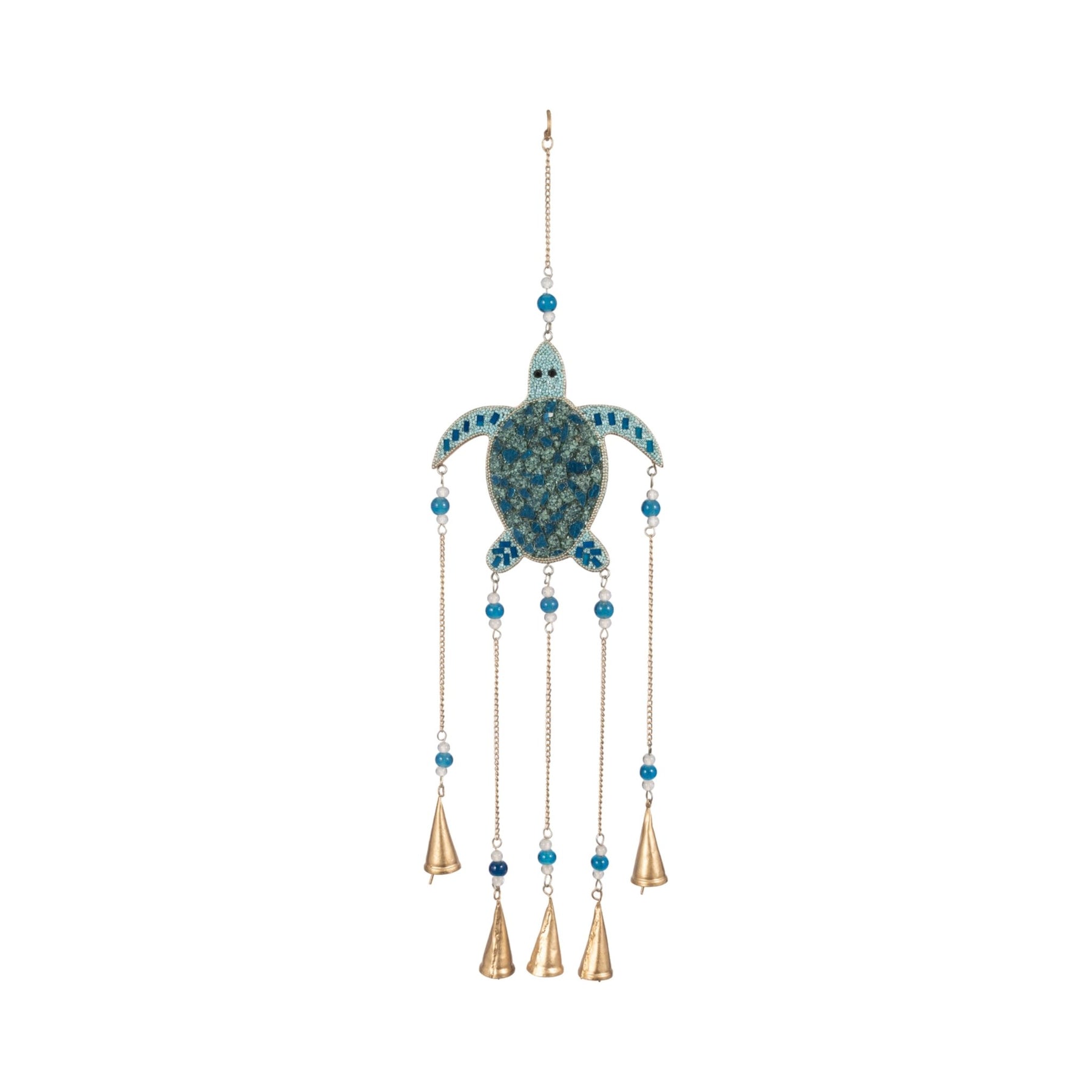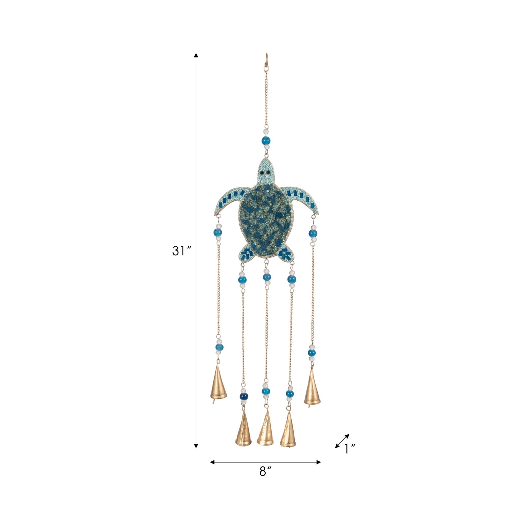 31" Mosaic Turtle With Bells, Blue/gold - Al Rugaib Furniture