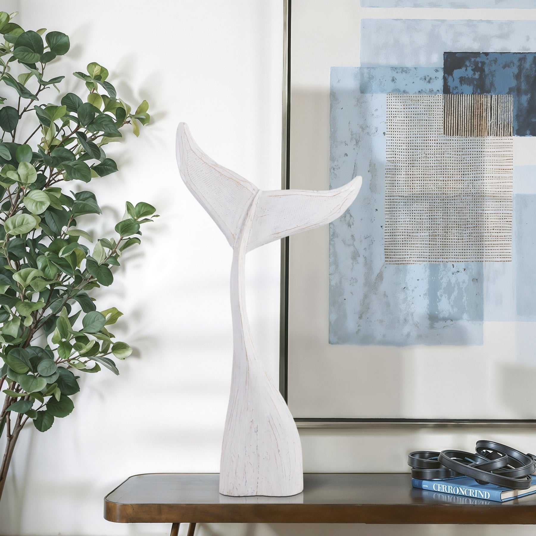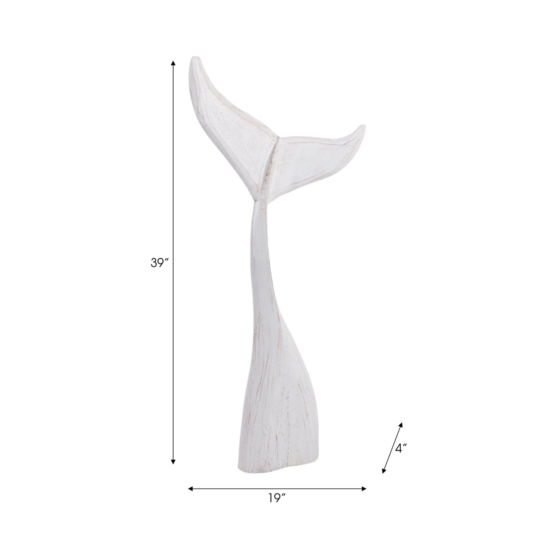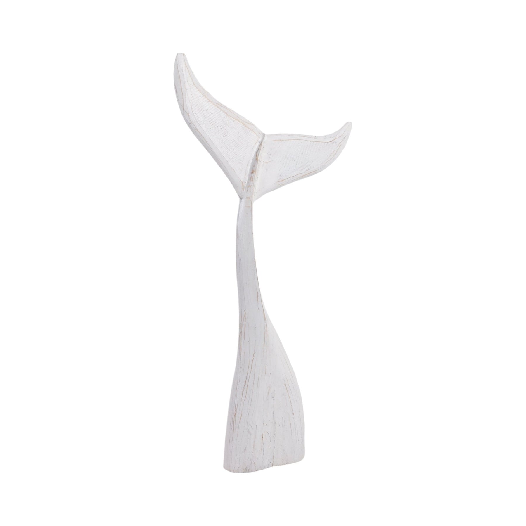 39" Wood Whale Tail Decor, Wht - Al Rugaib Furniture