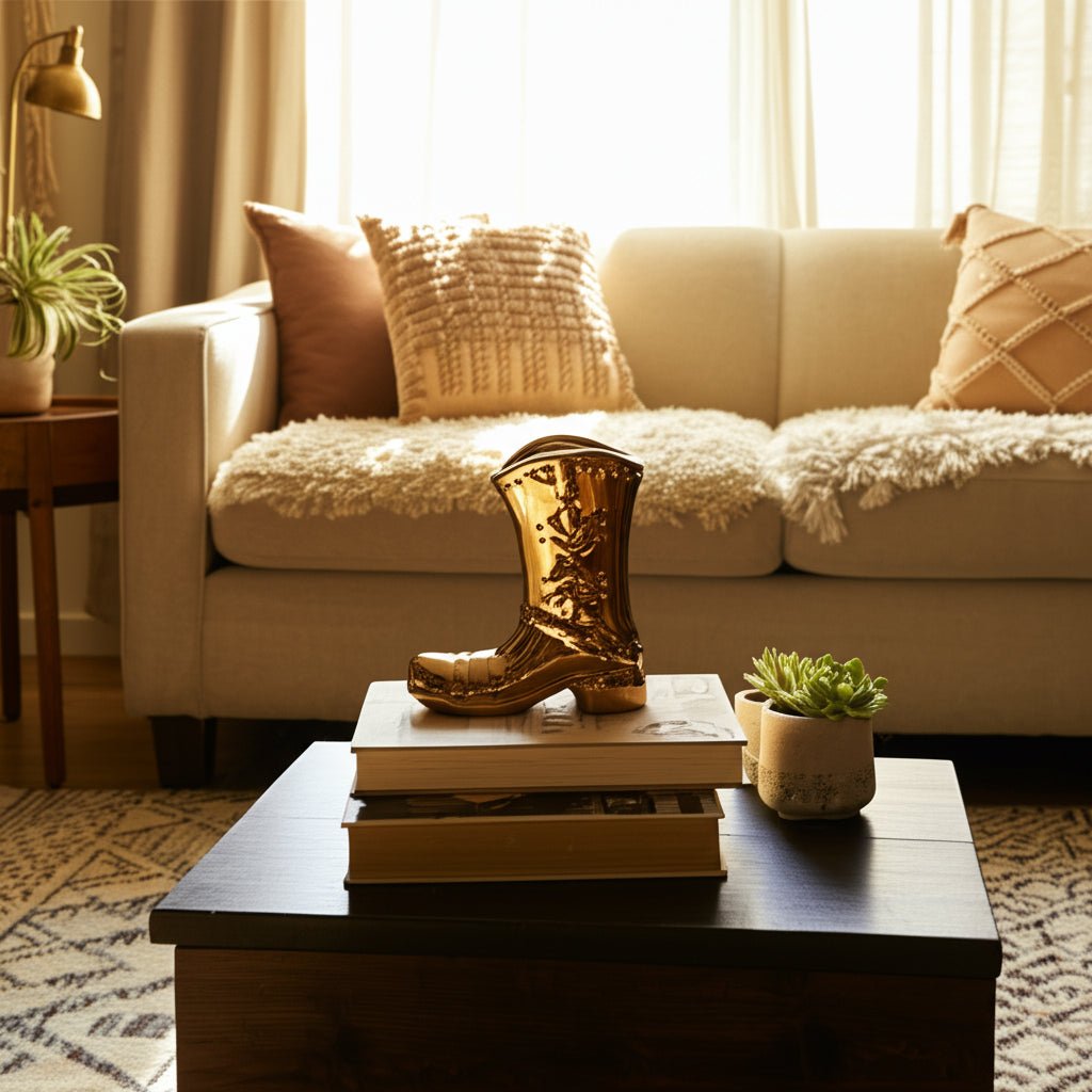 7" Cowboy Boot Vase, Gold - Al Rugaib Furniture
