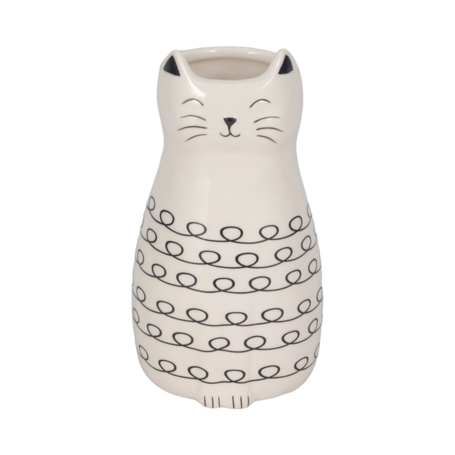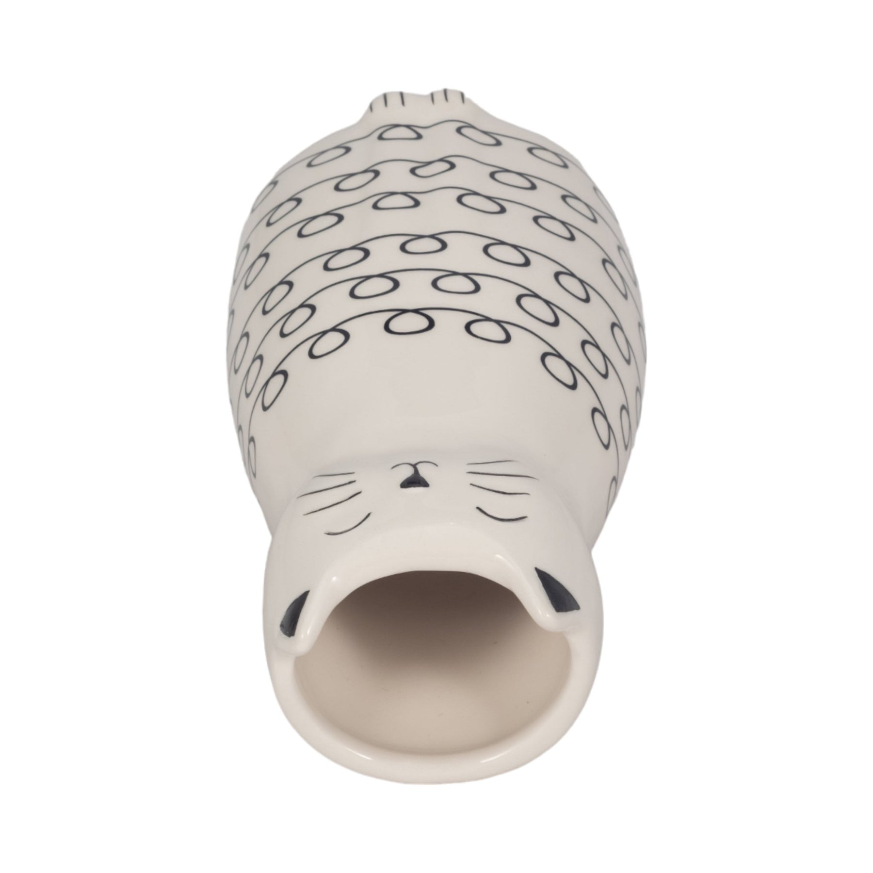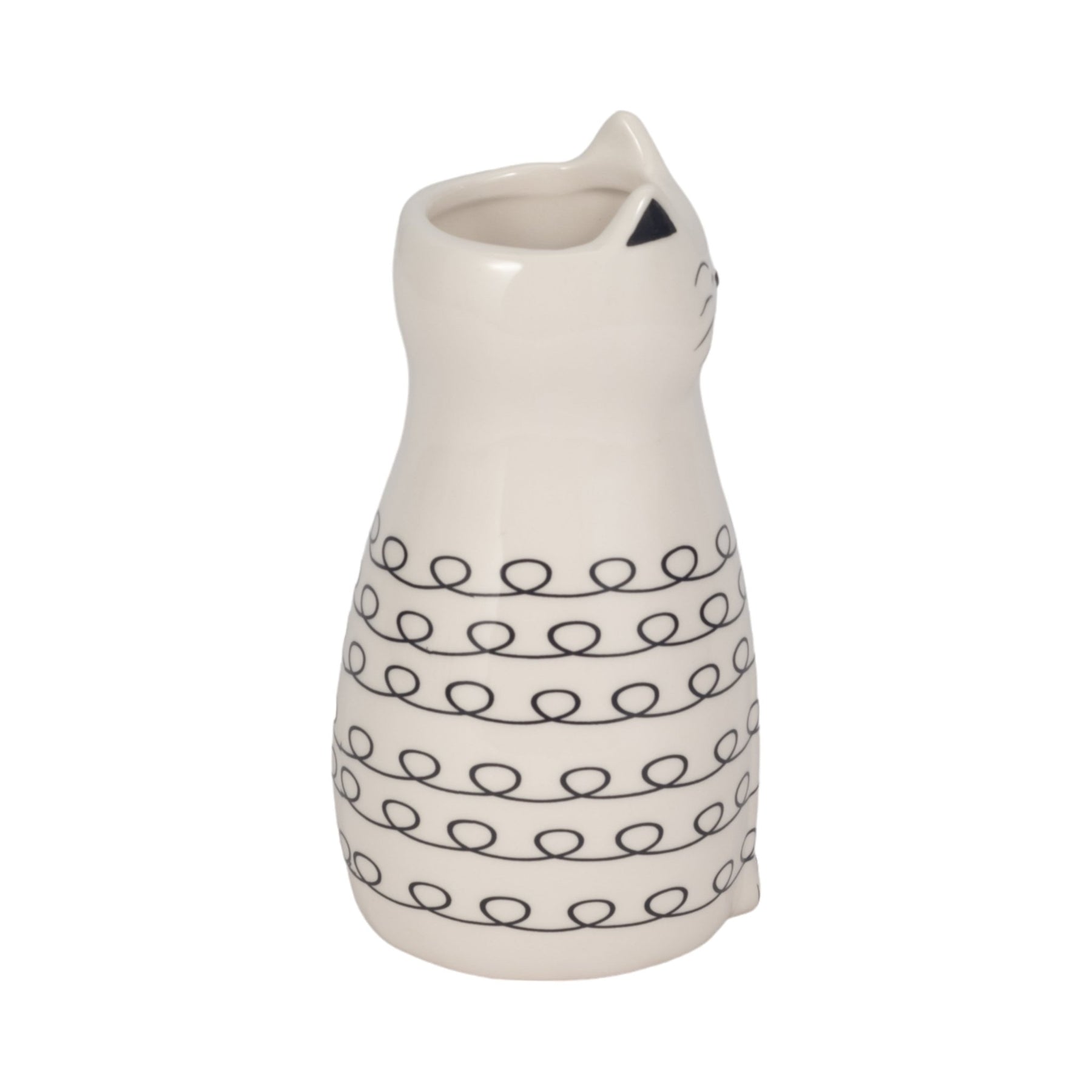 7" Squiggly Kitty With Vase Opening, White/black - Al Rugaib Furniture