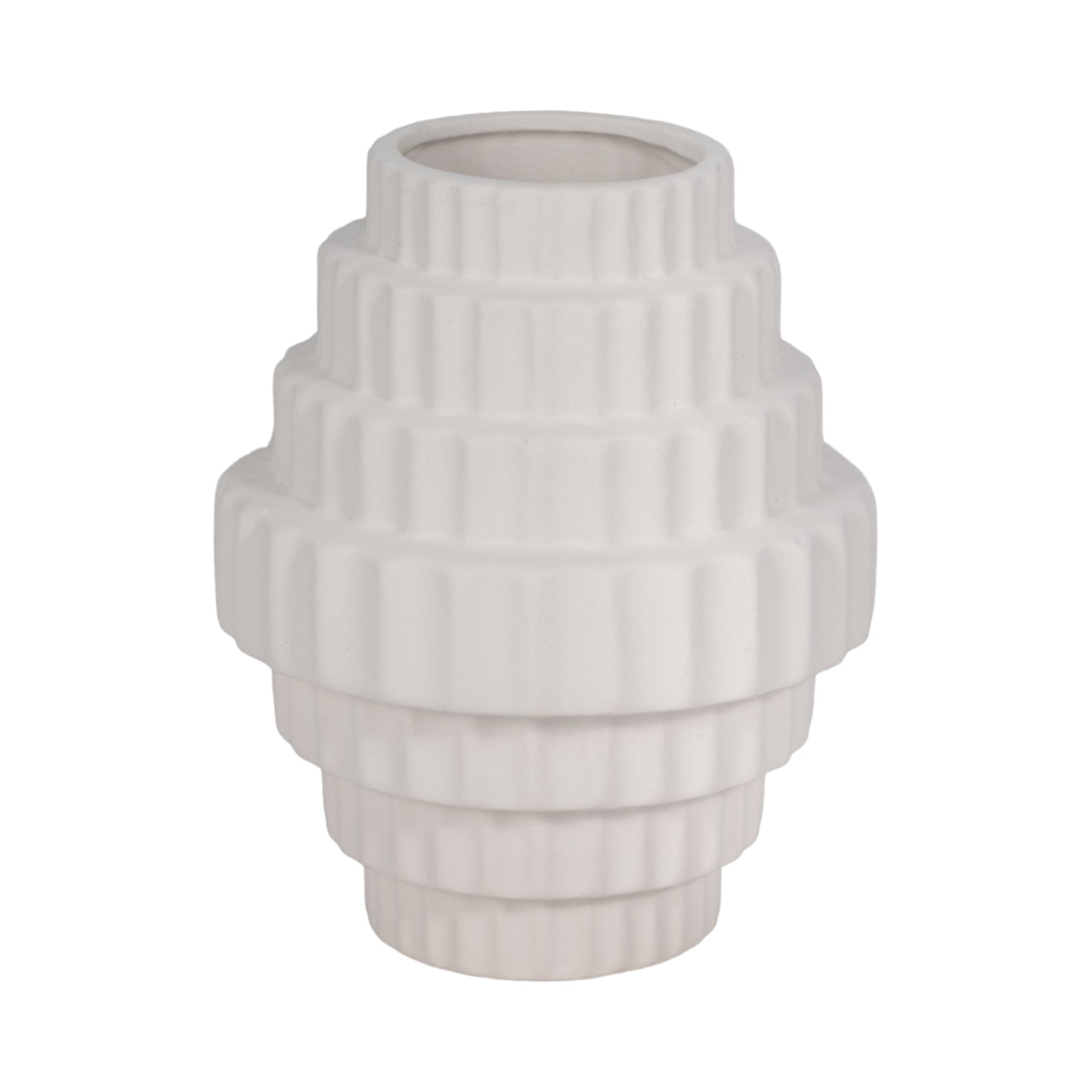 8" Textured Staggered Vase, White - Al Rugaib Furniture