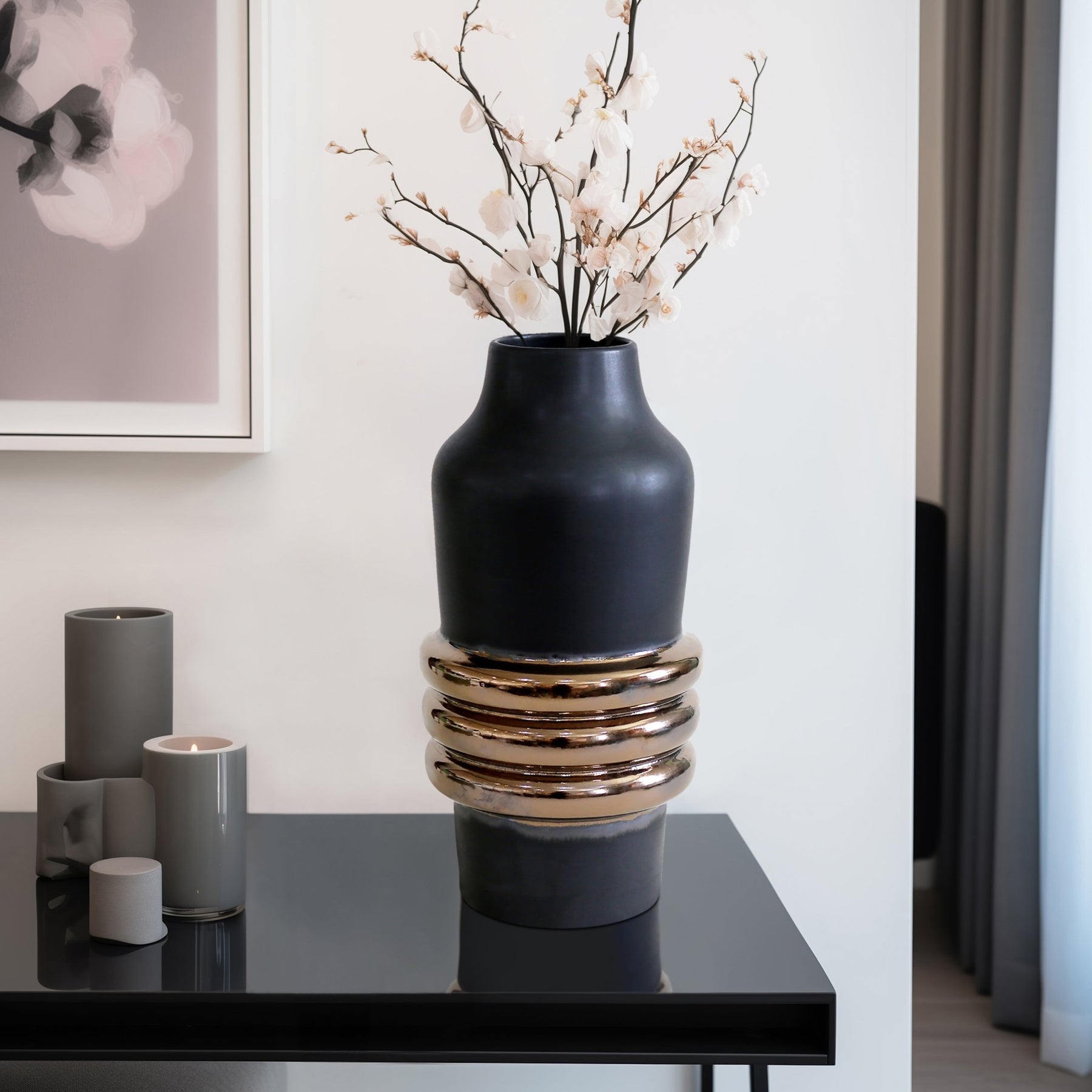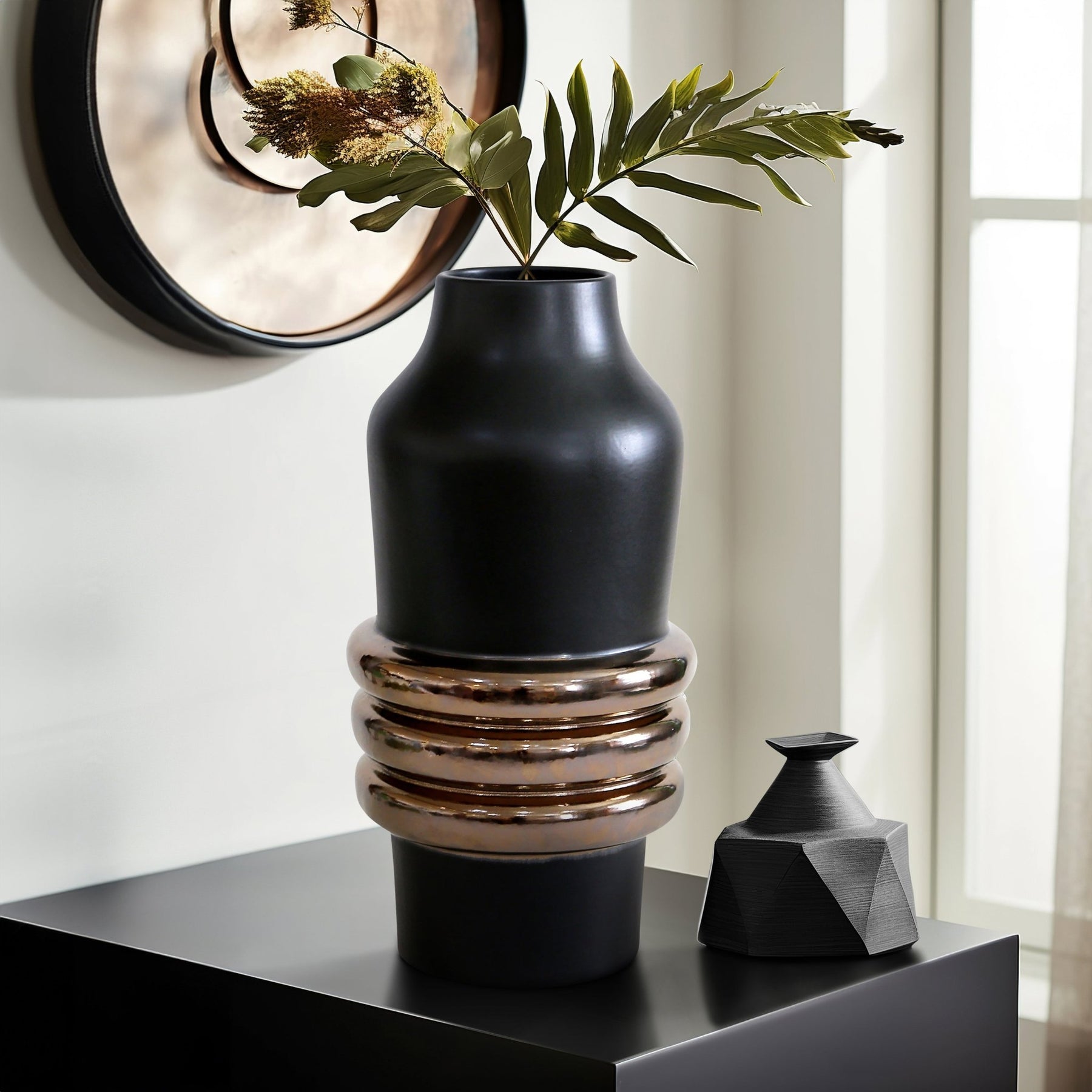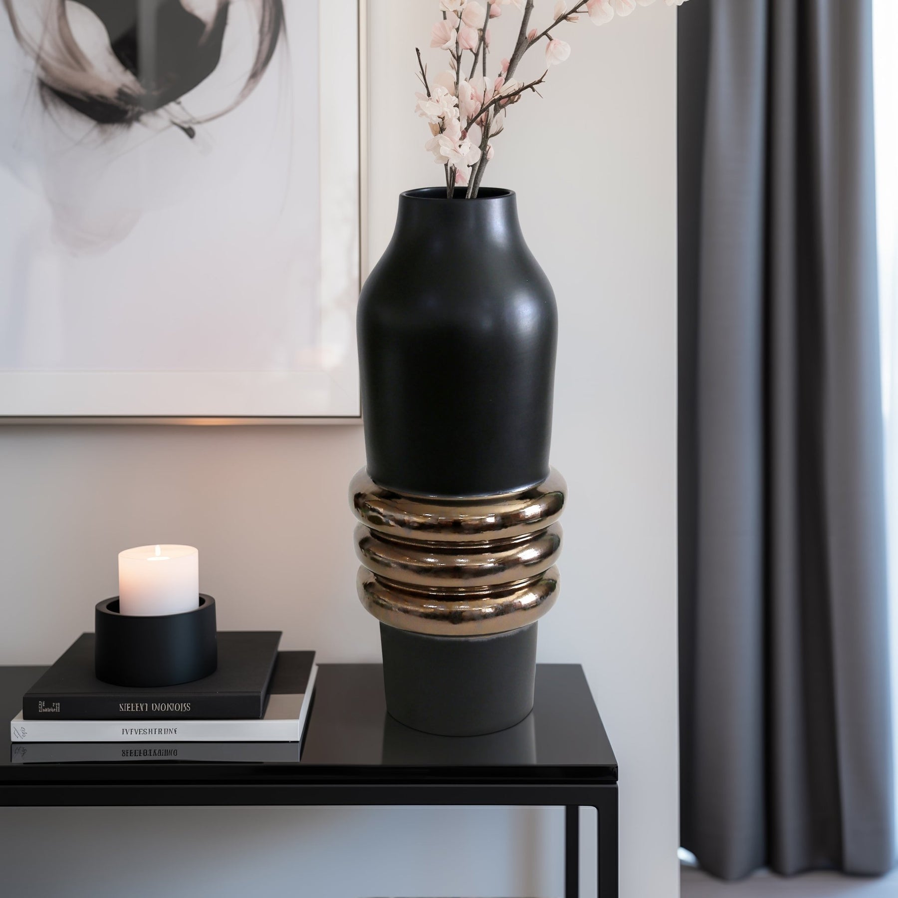 Calorin Oversized Tribal Vase, Black/gold - Al Rugaib Furniture