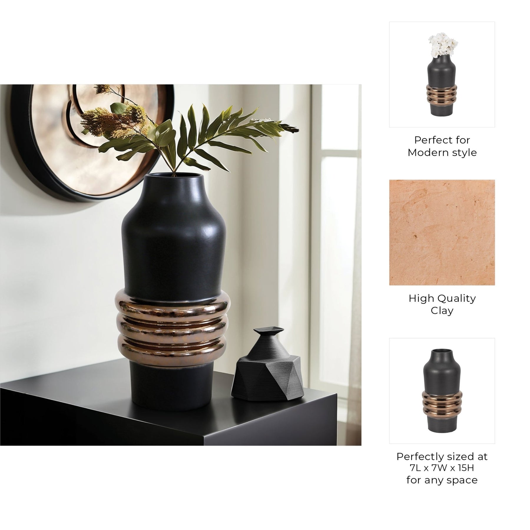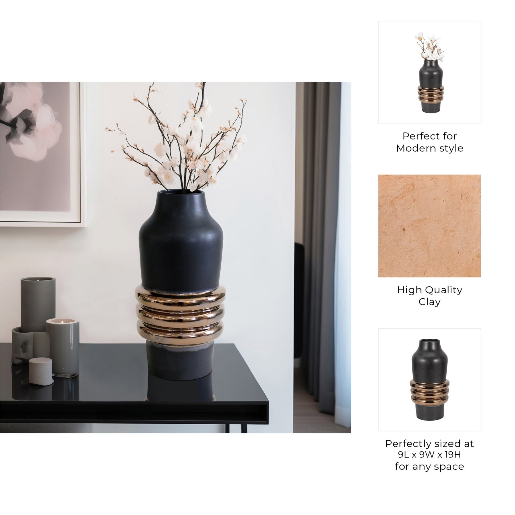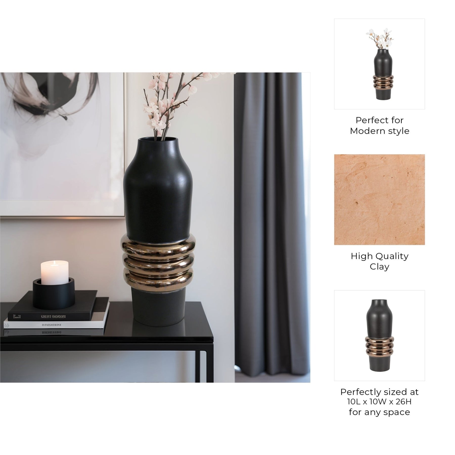 Calorin Oversized Tribal Vase, Black/gold - Al Rugaib Furniture