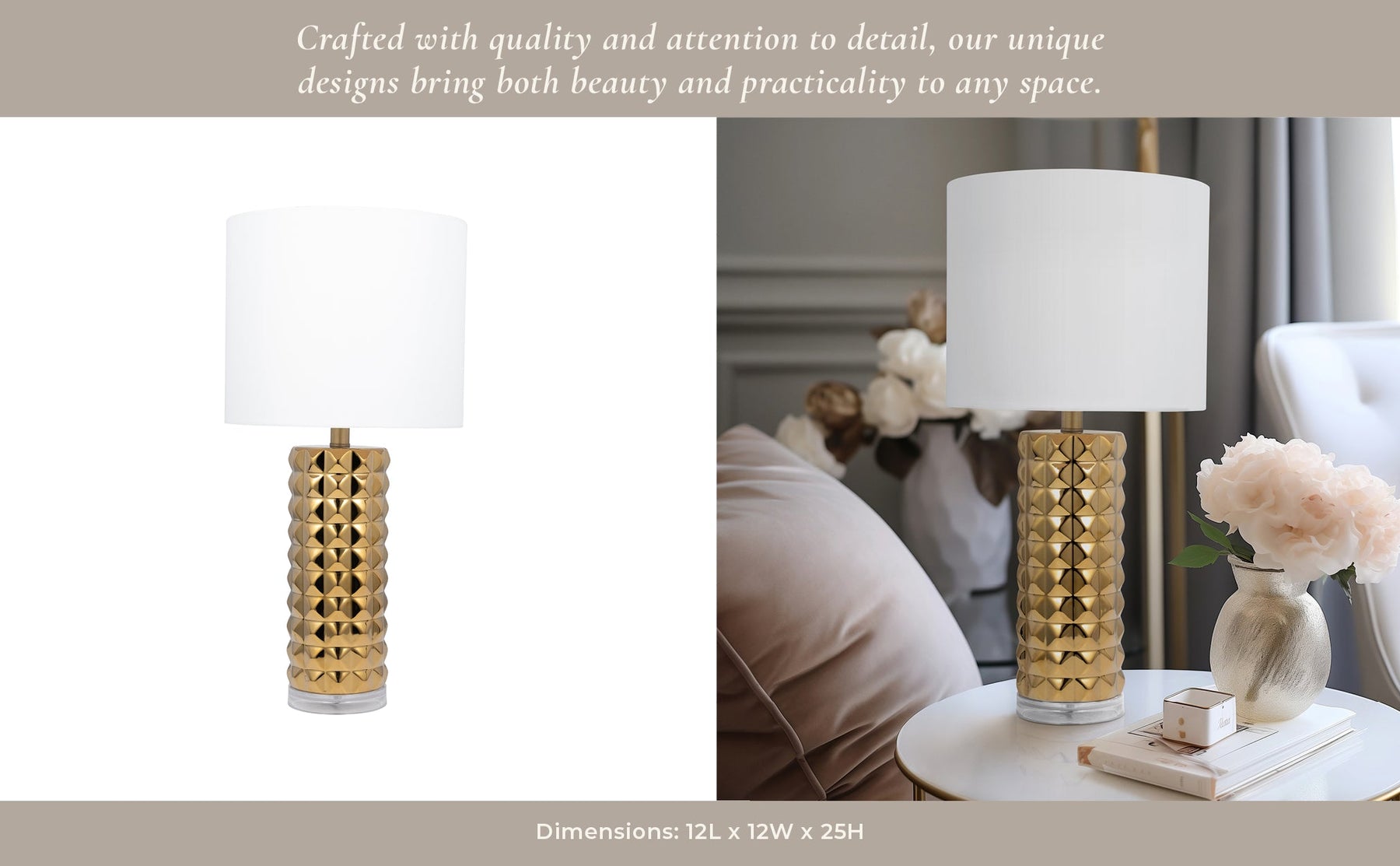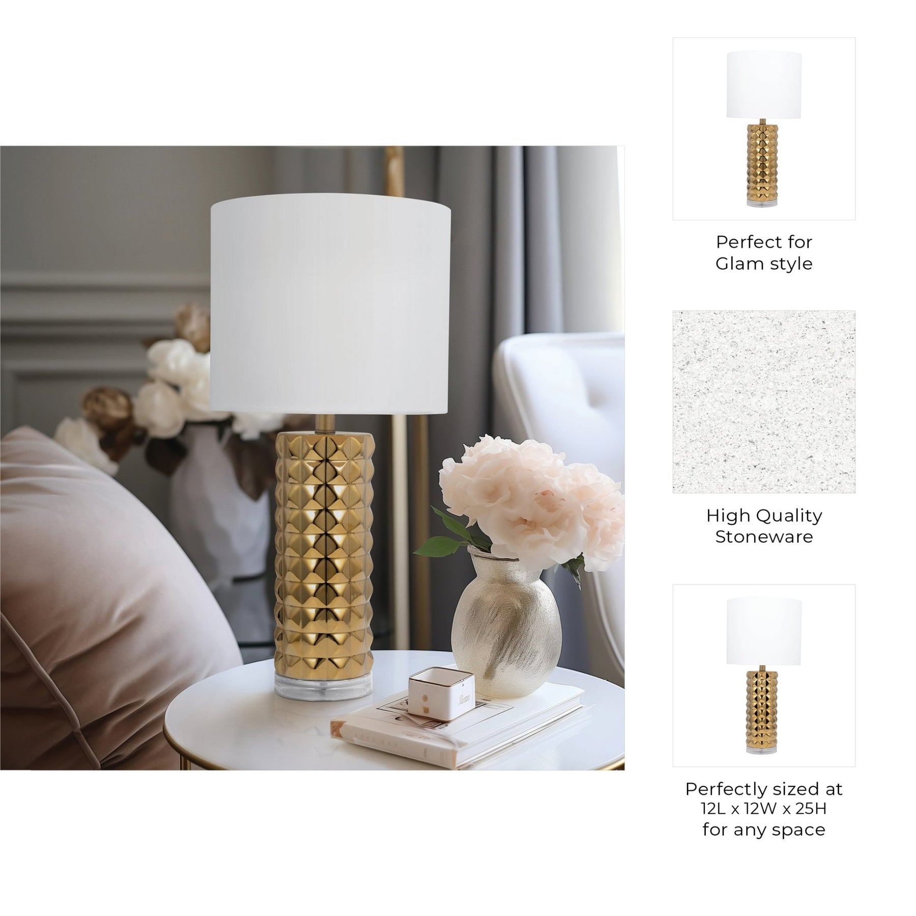 Ceramic 25" Table Lamp, Gold - Al Rugaib Furniture