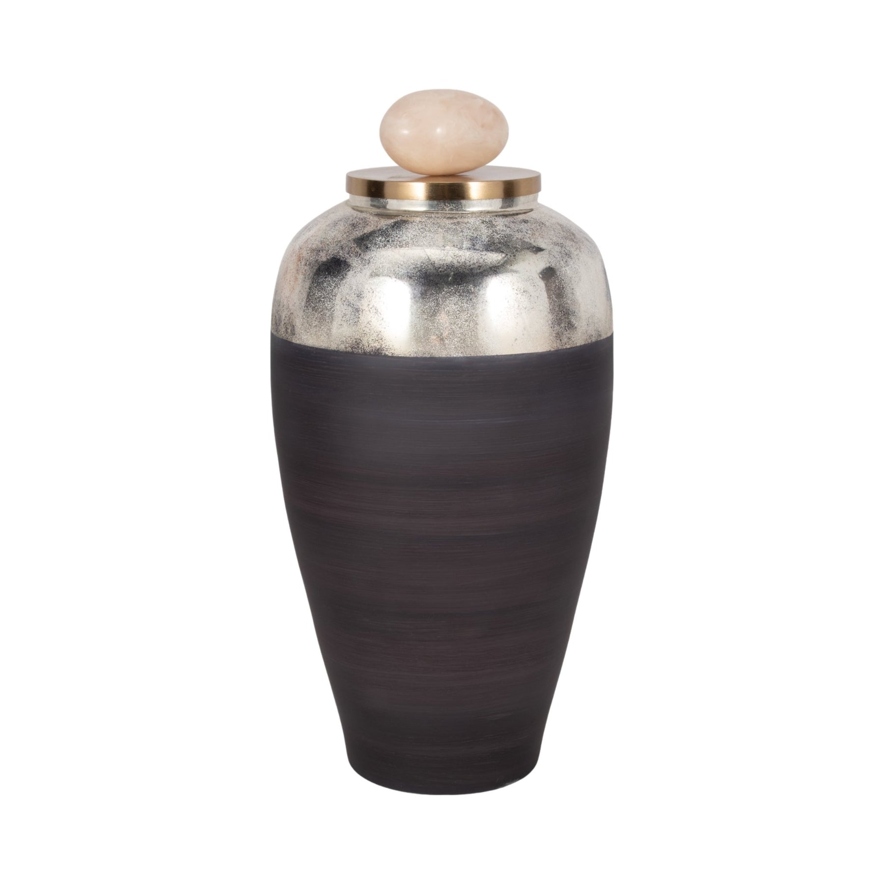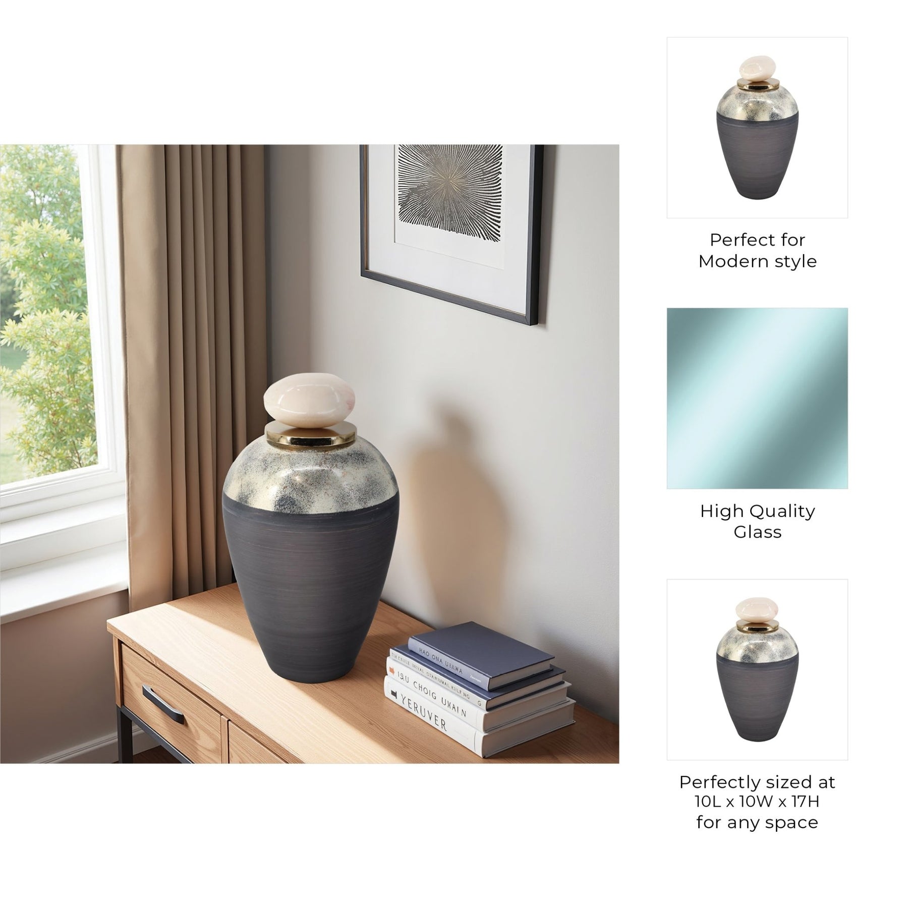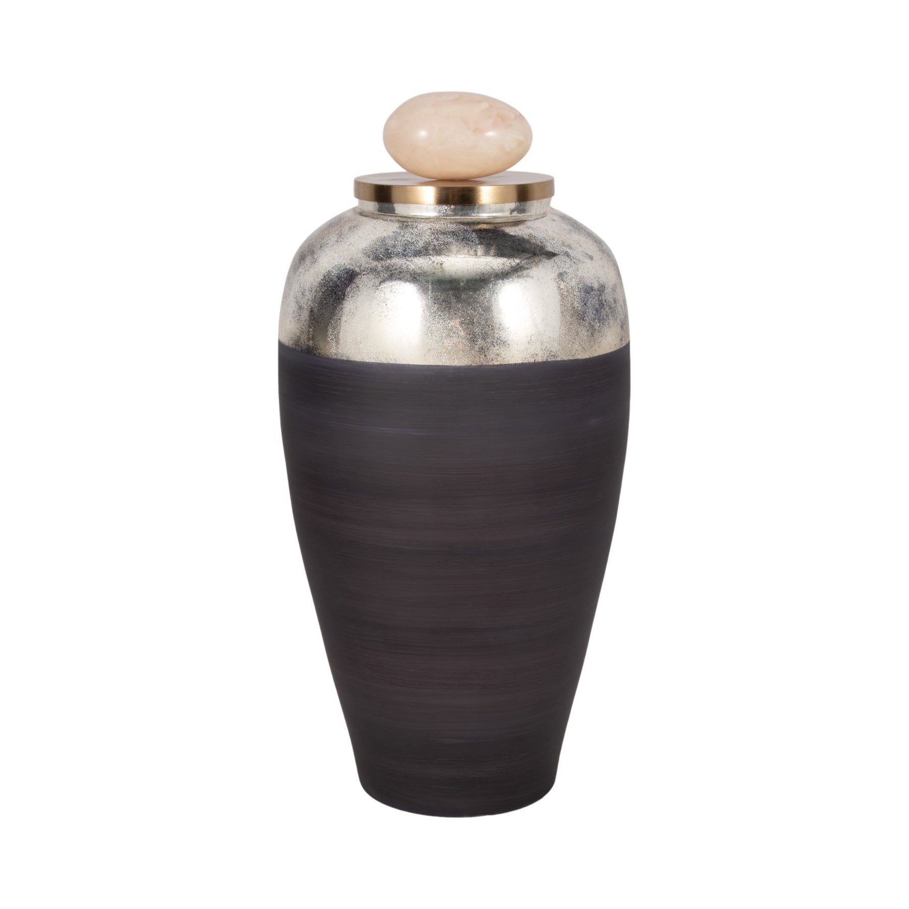 GLASS, VASE W/ RESIN TOPPER, GRAY - Al Rugaib Furniture