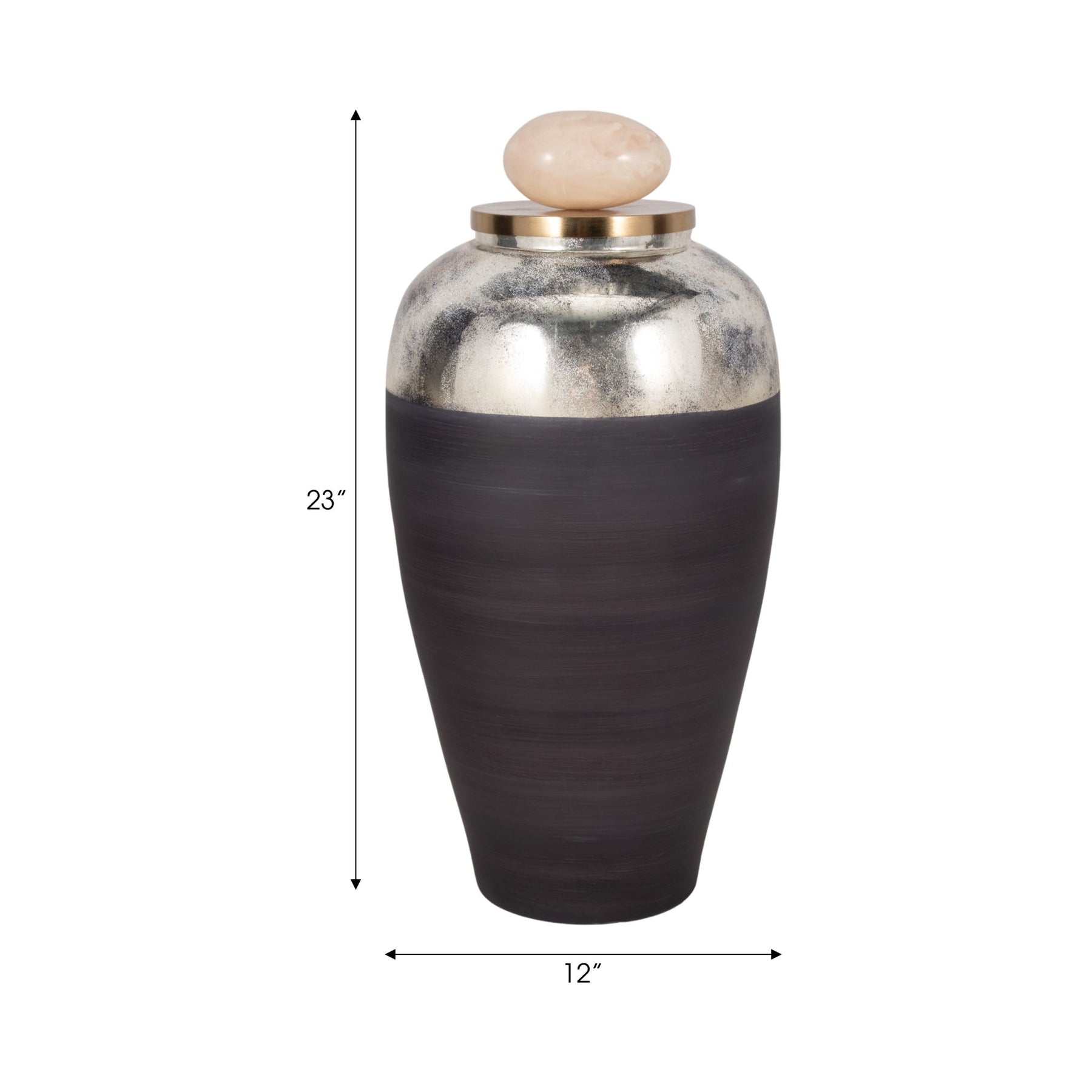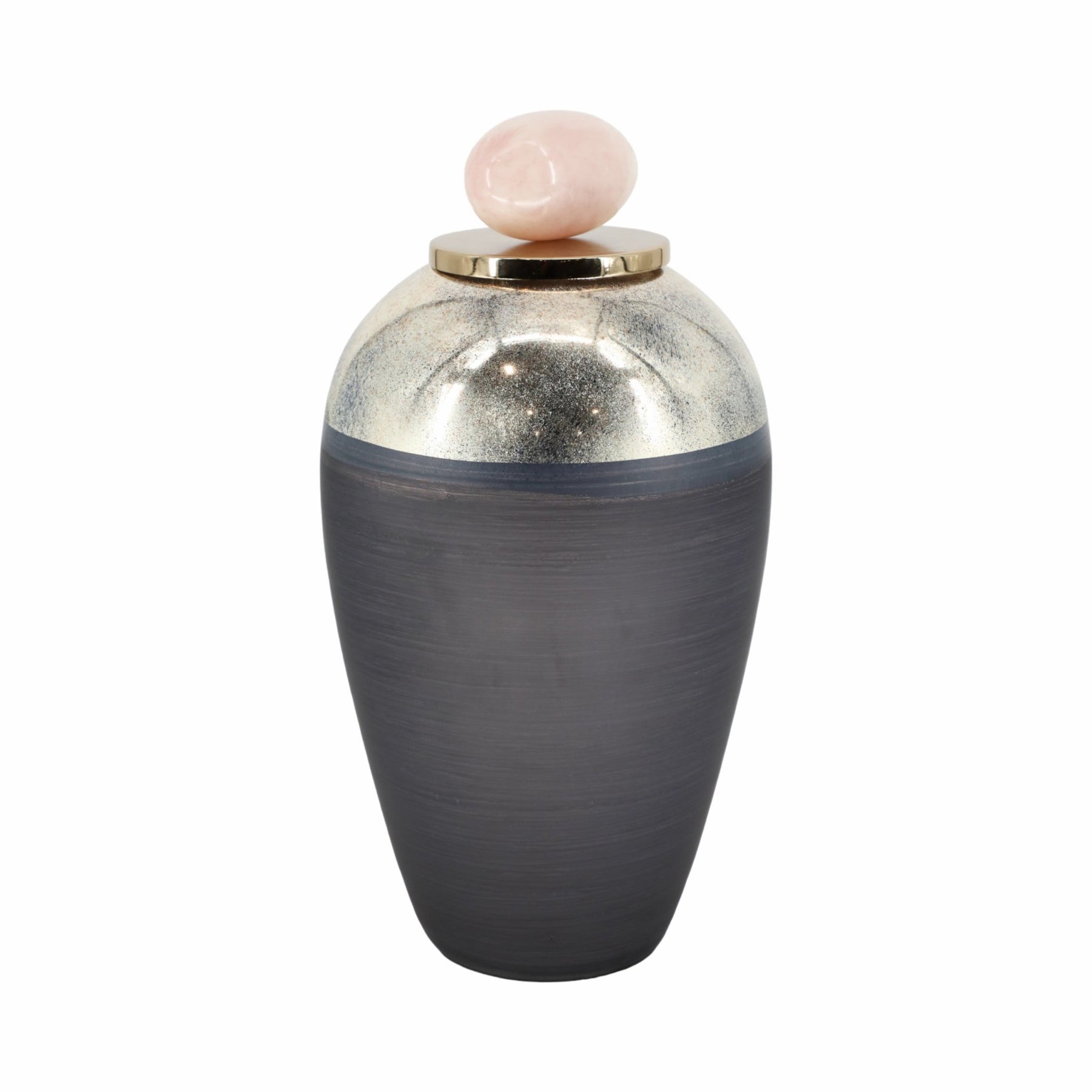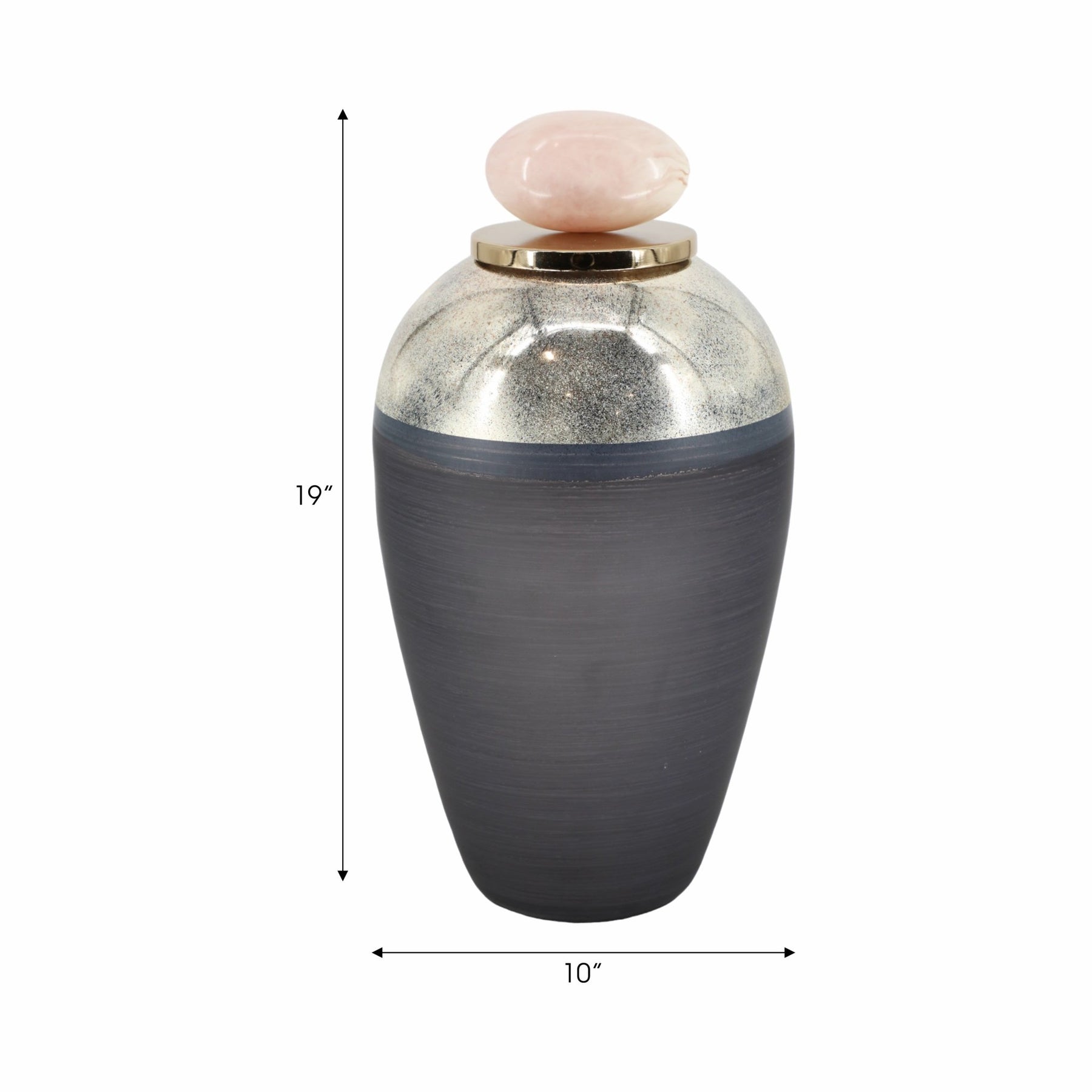 GLASS, VASE W/ RESIN TOPPER, GRAY - Al Rugaib Furniture