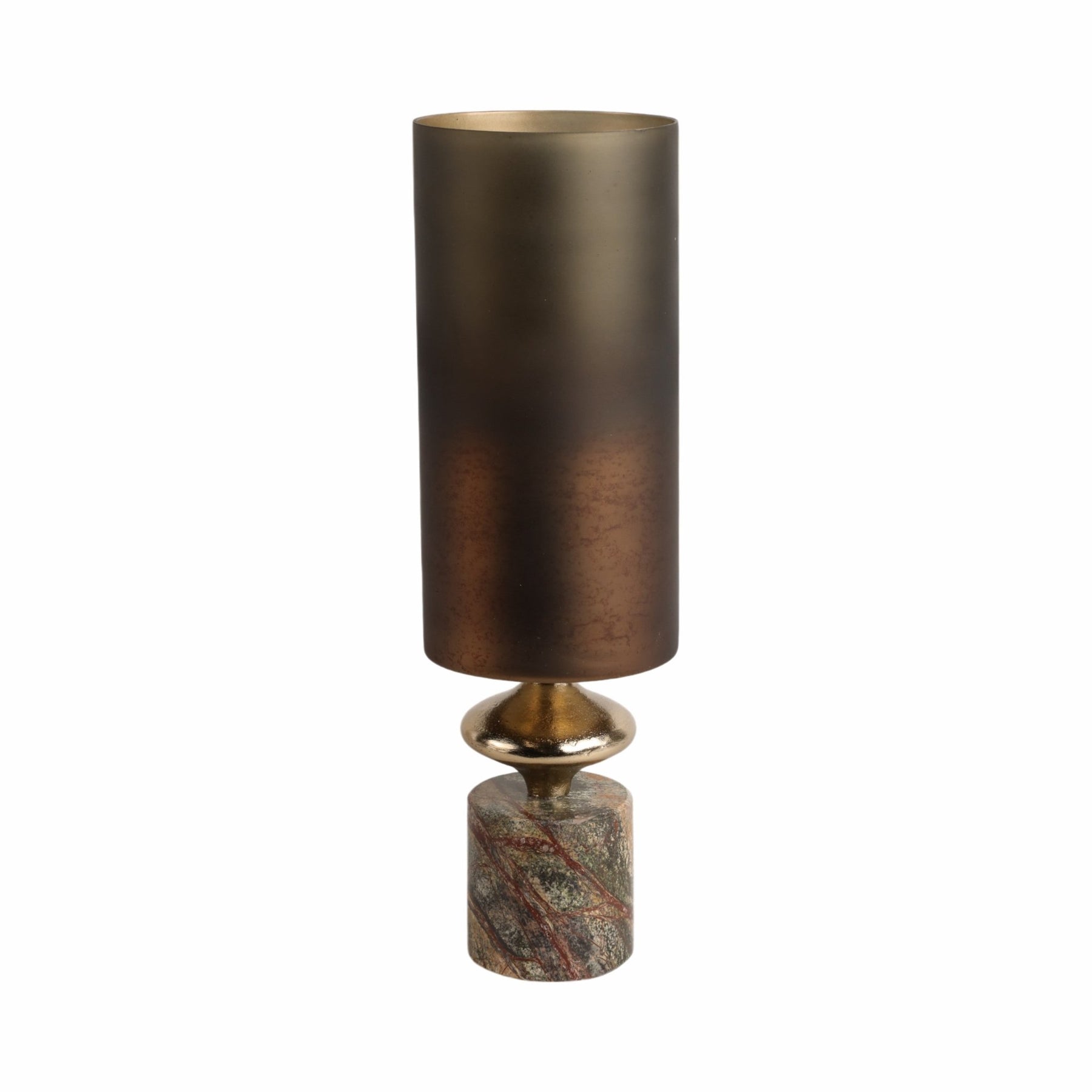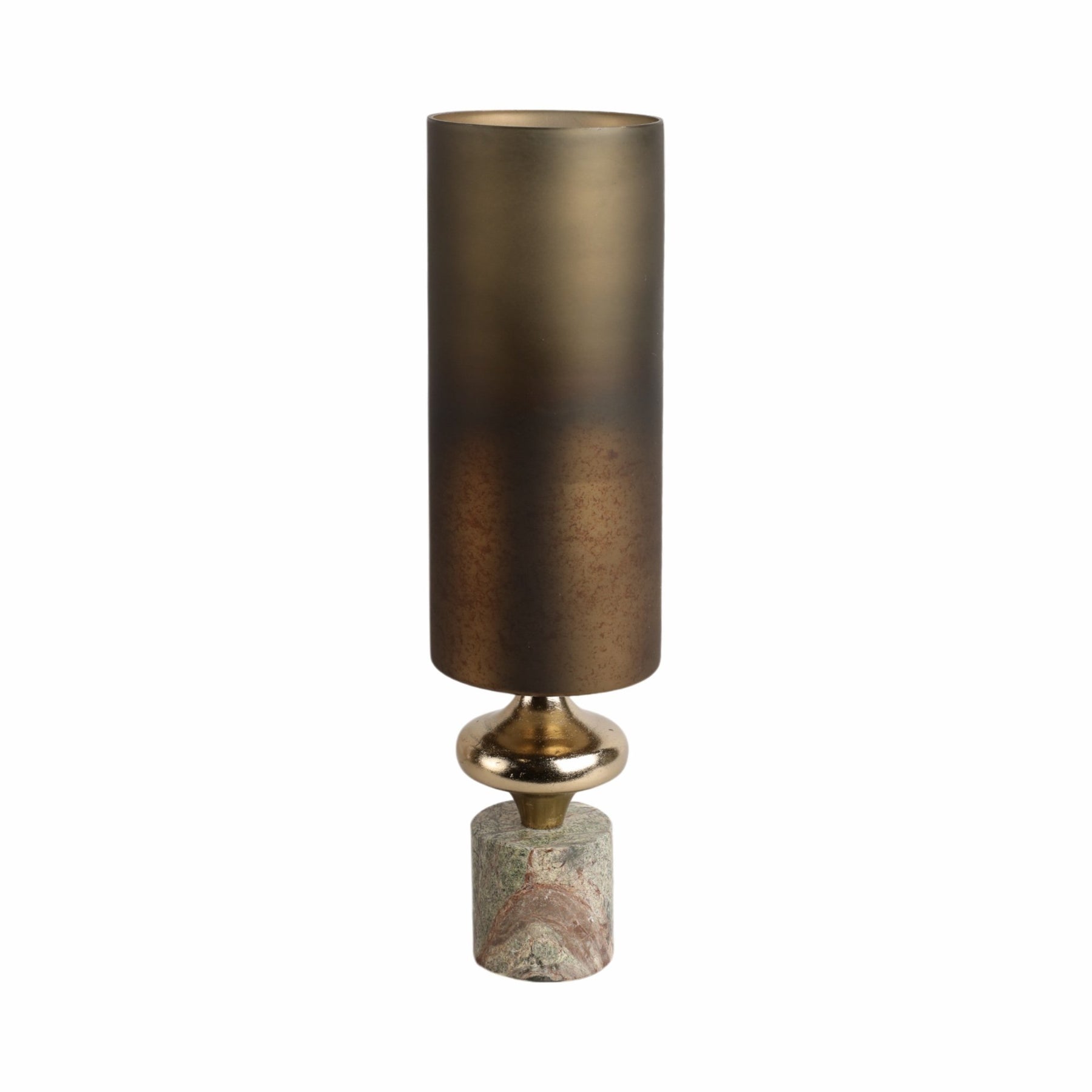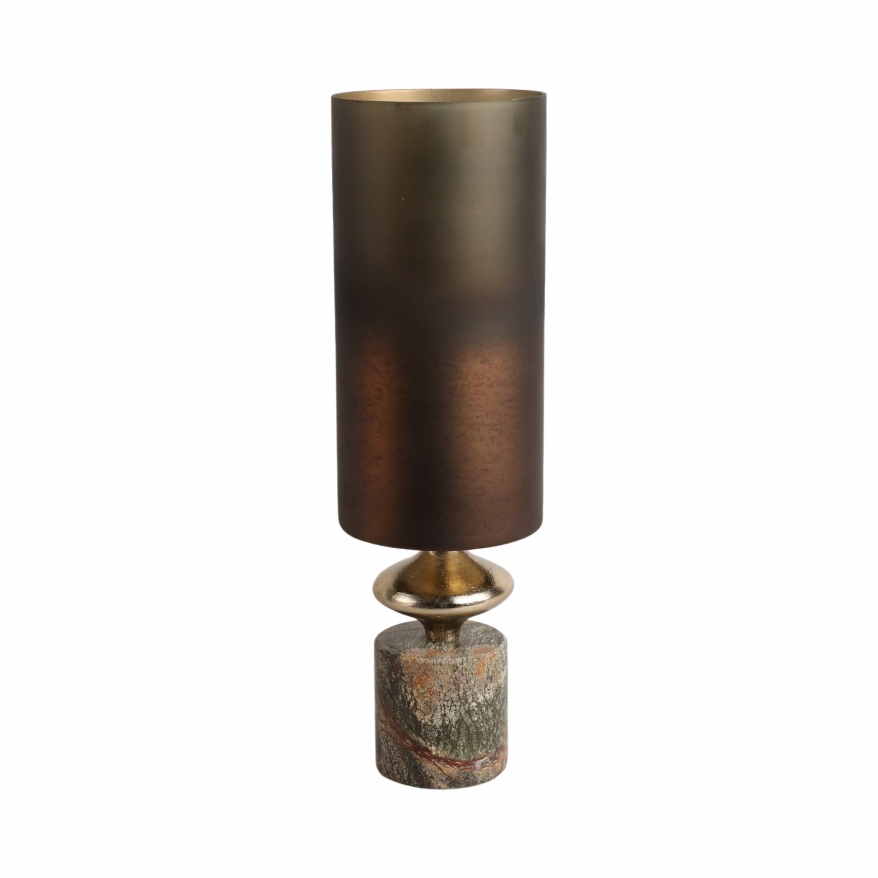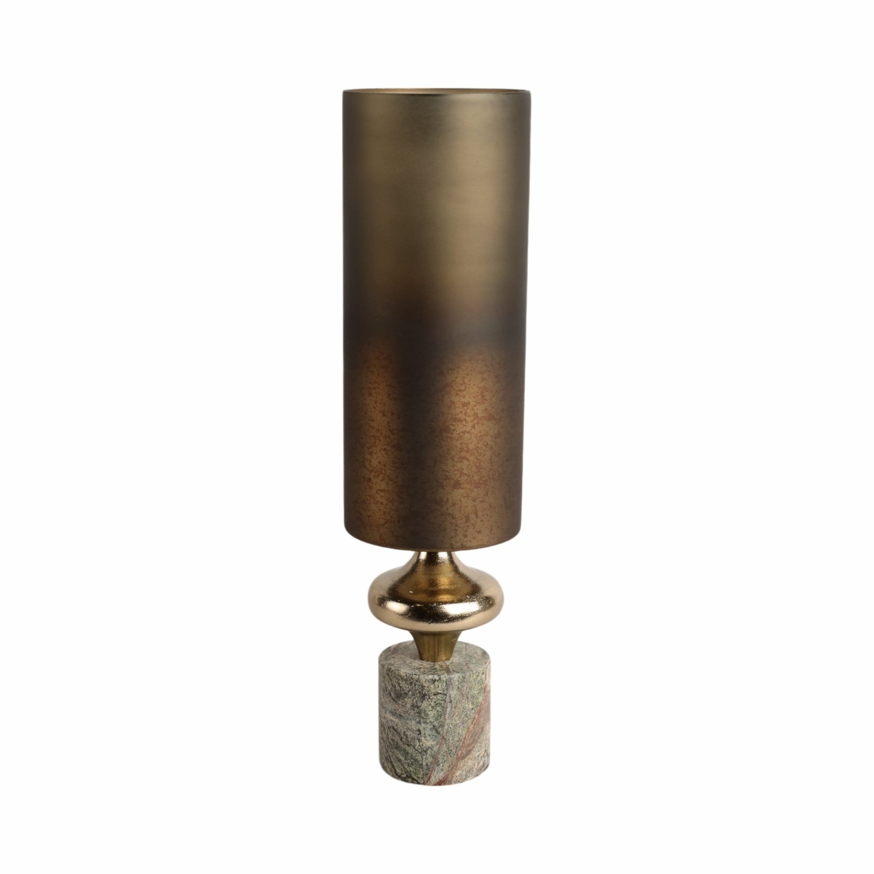 Kano Glass Hurricane W/stone Base, Green - Al Rugaib Furniture