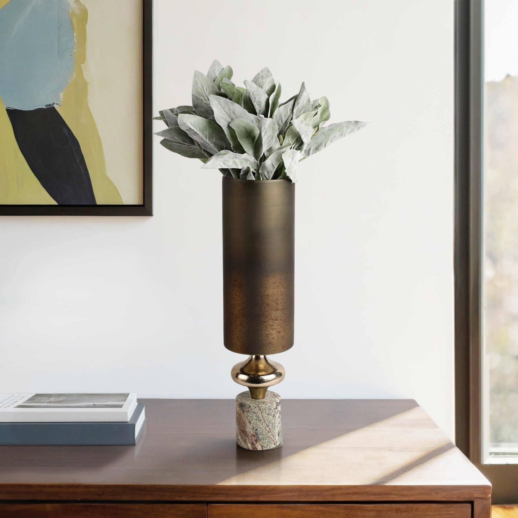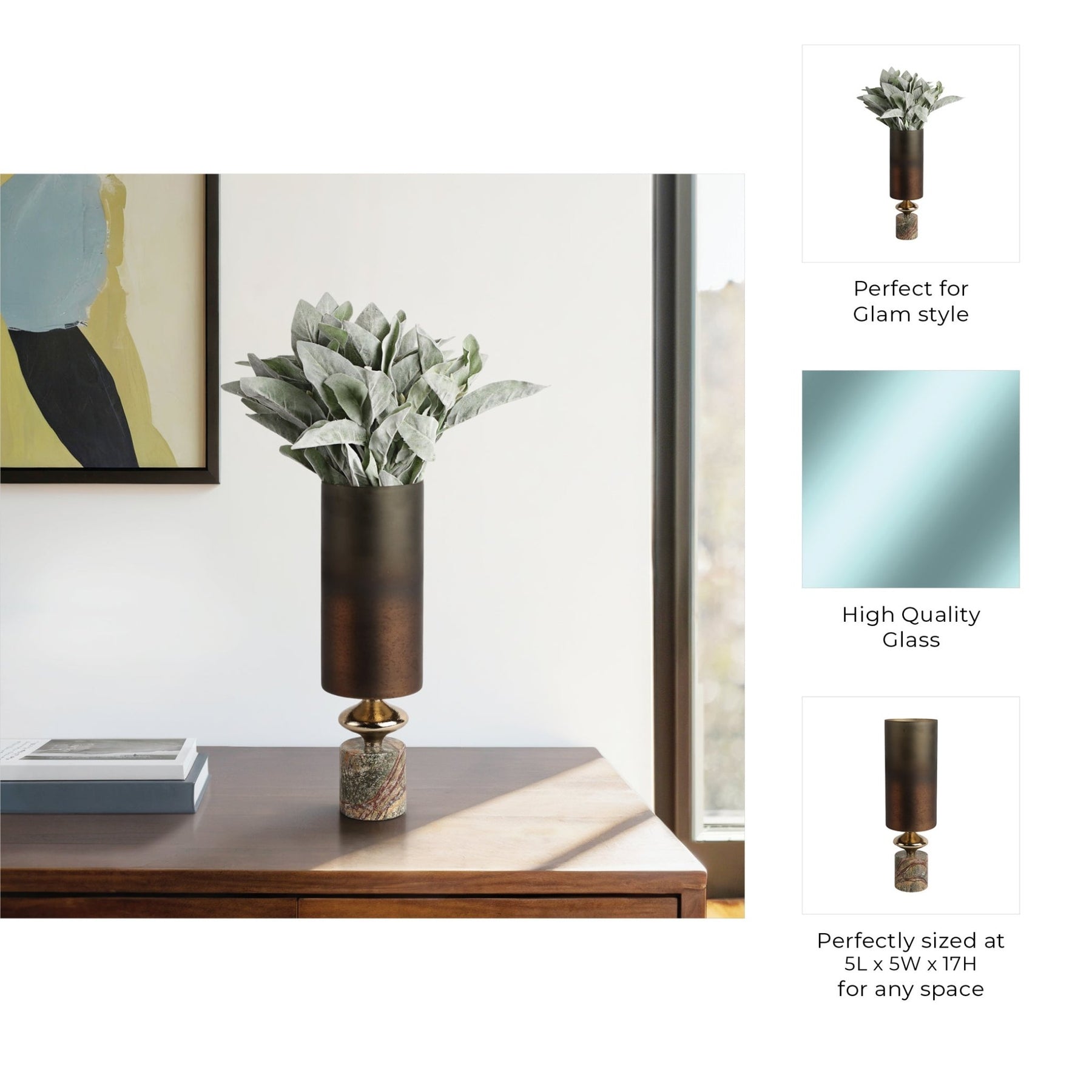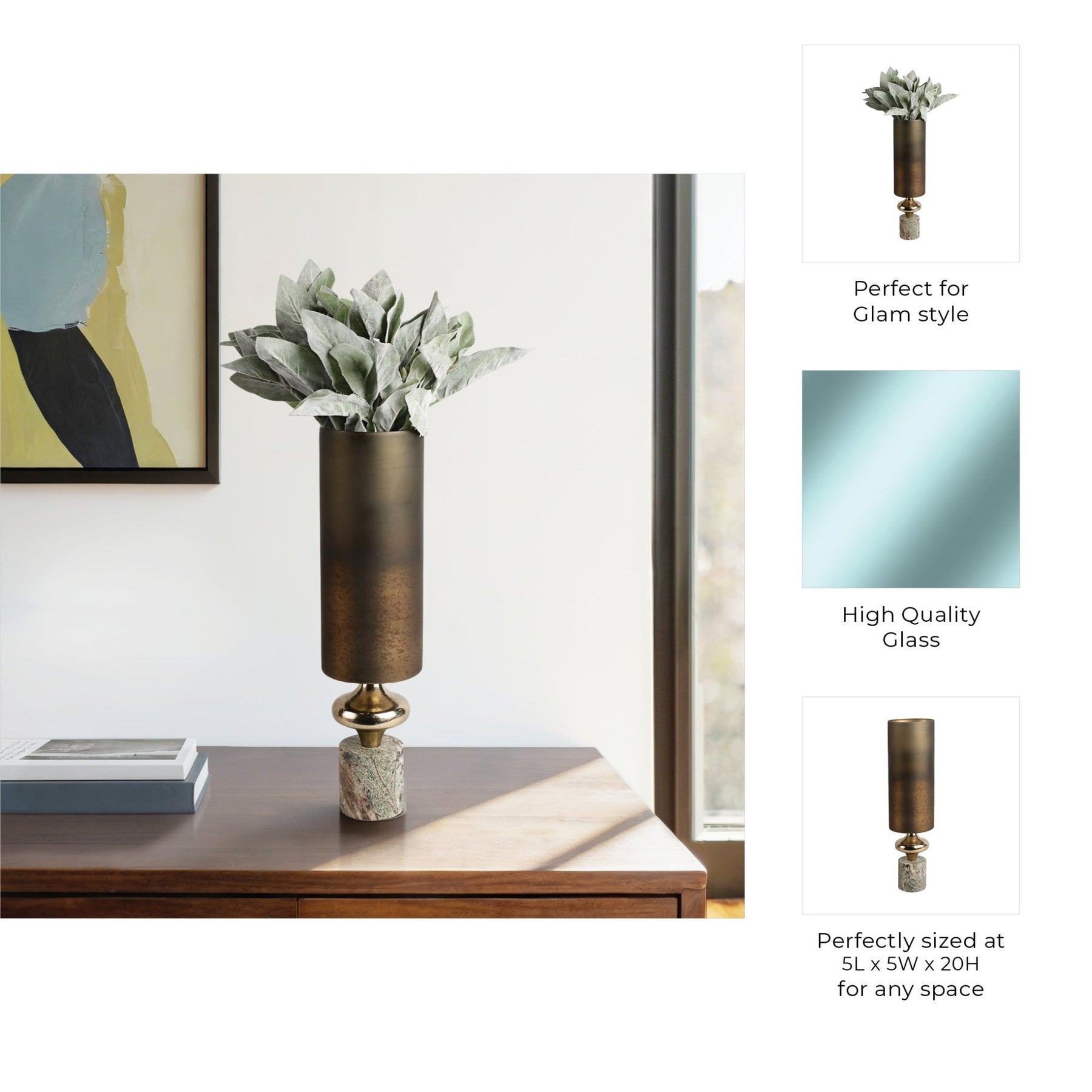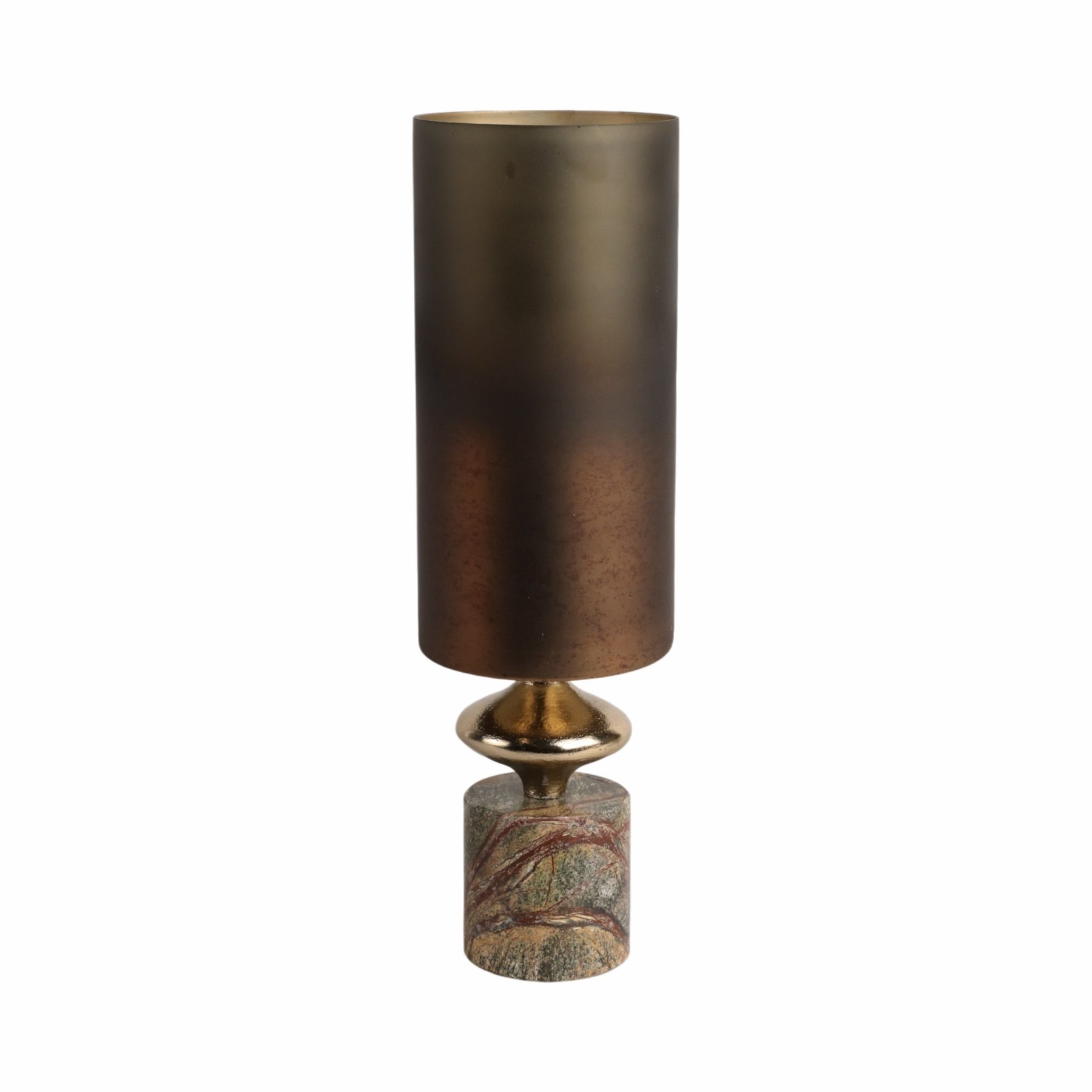 Kano Glass Hurricane W/stone Base, Green - Al Rugaib Furniture