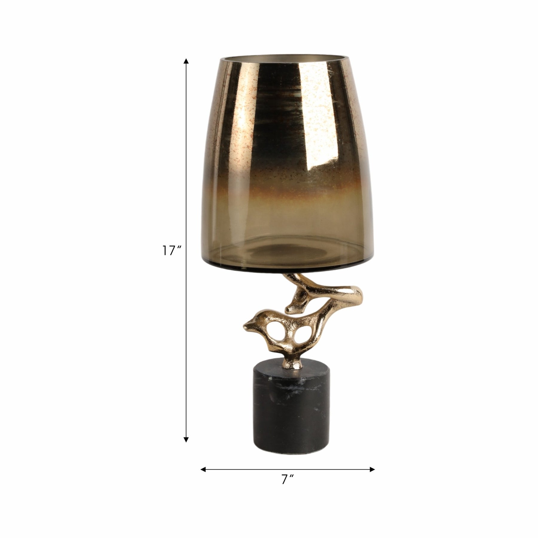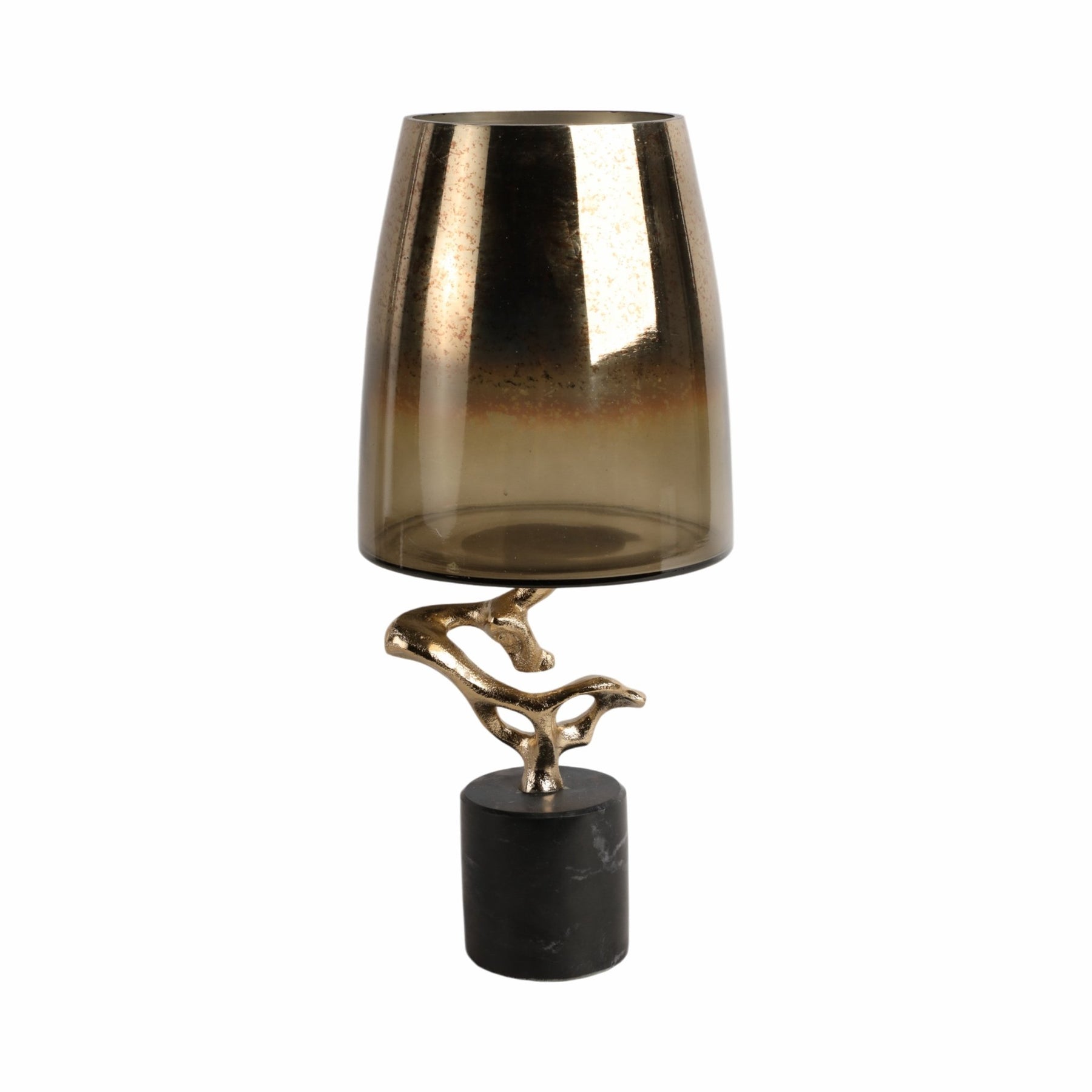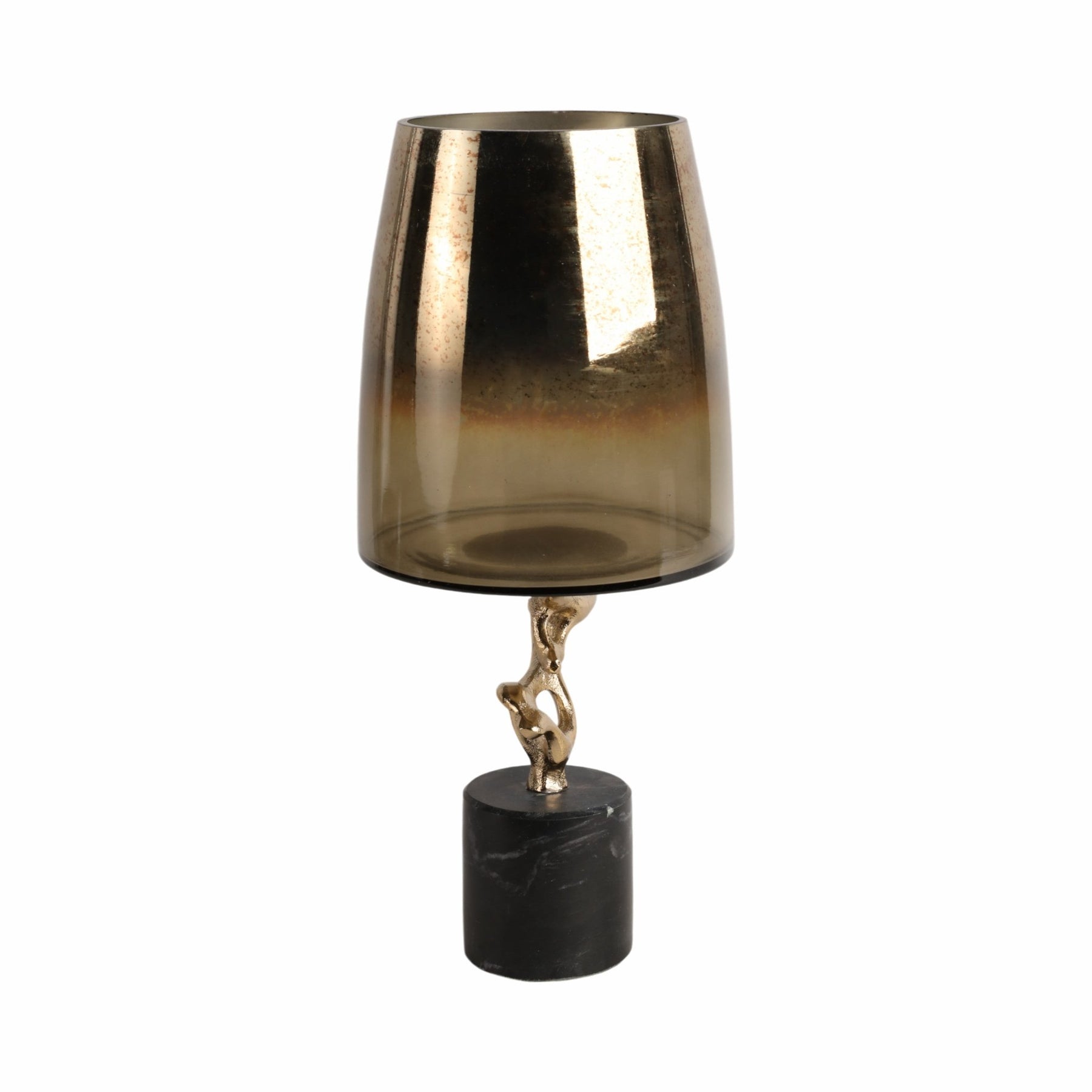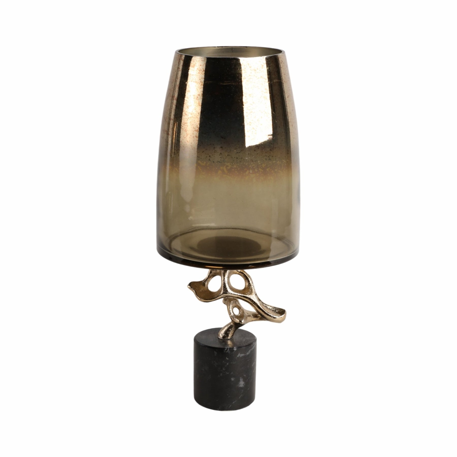 Lusaka Hurrican Glass W/stone Base, Gold - Al Rugaib Furniture