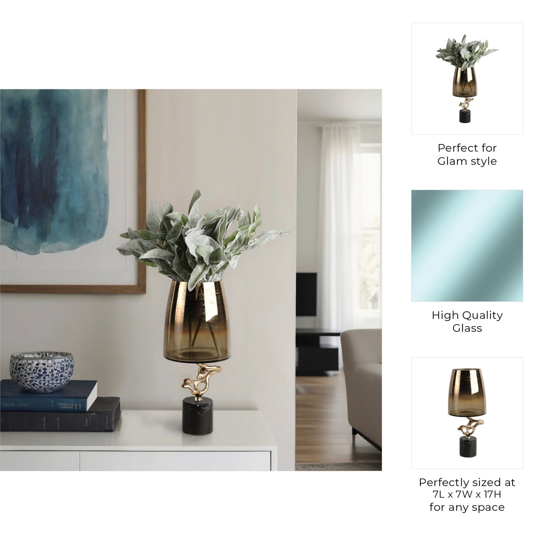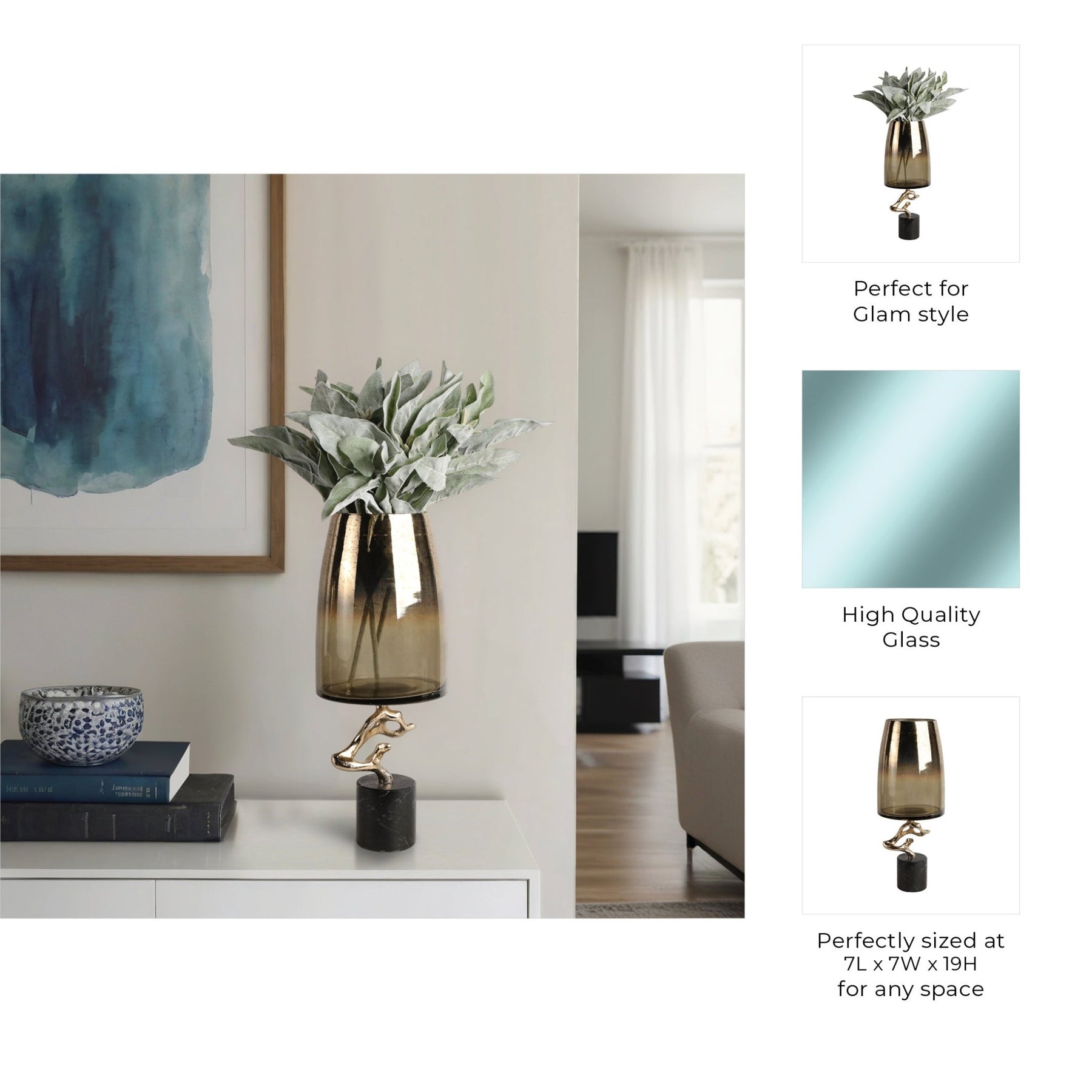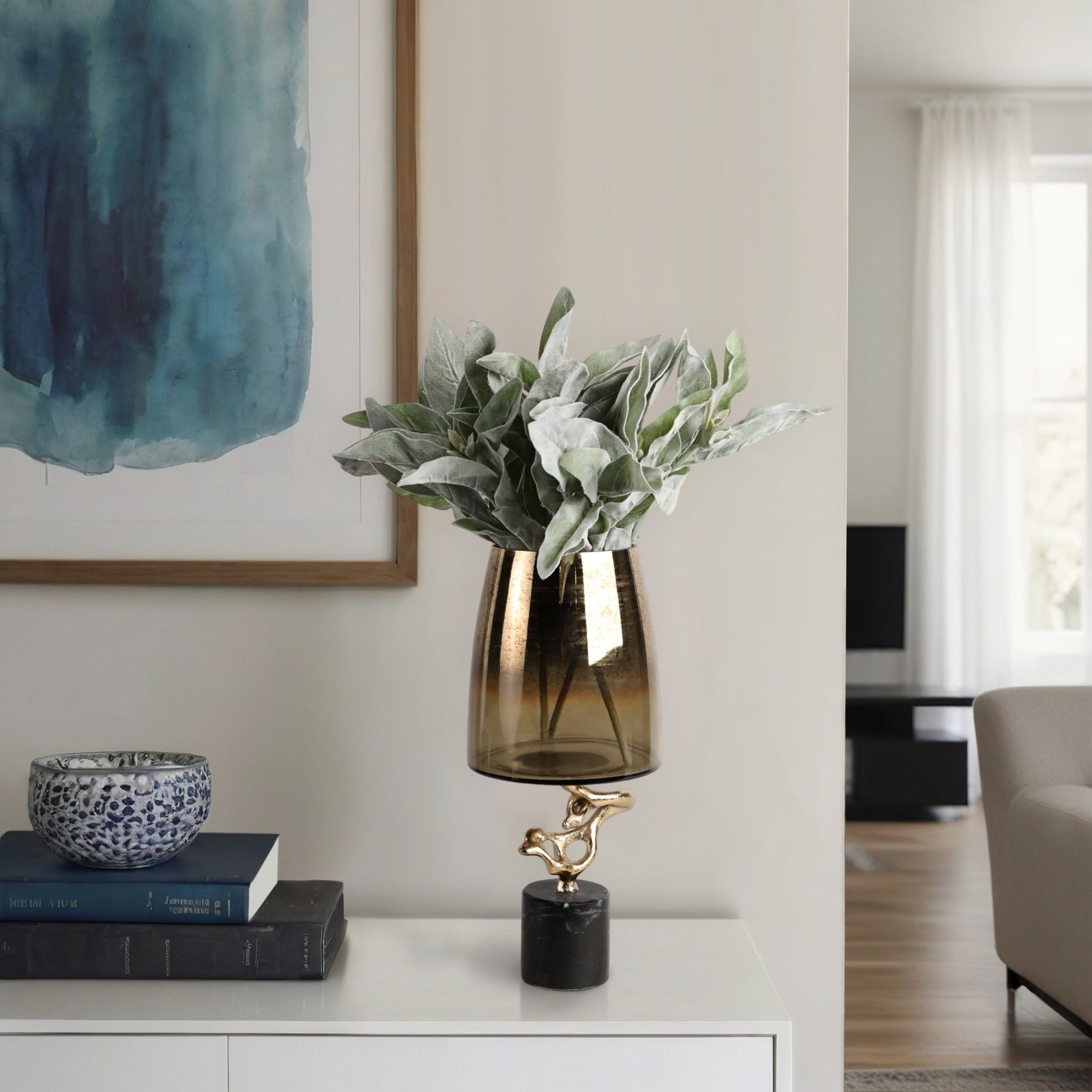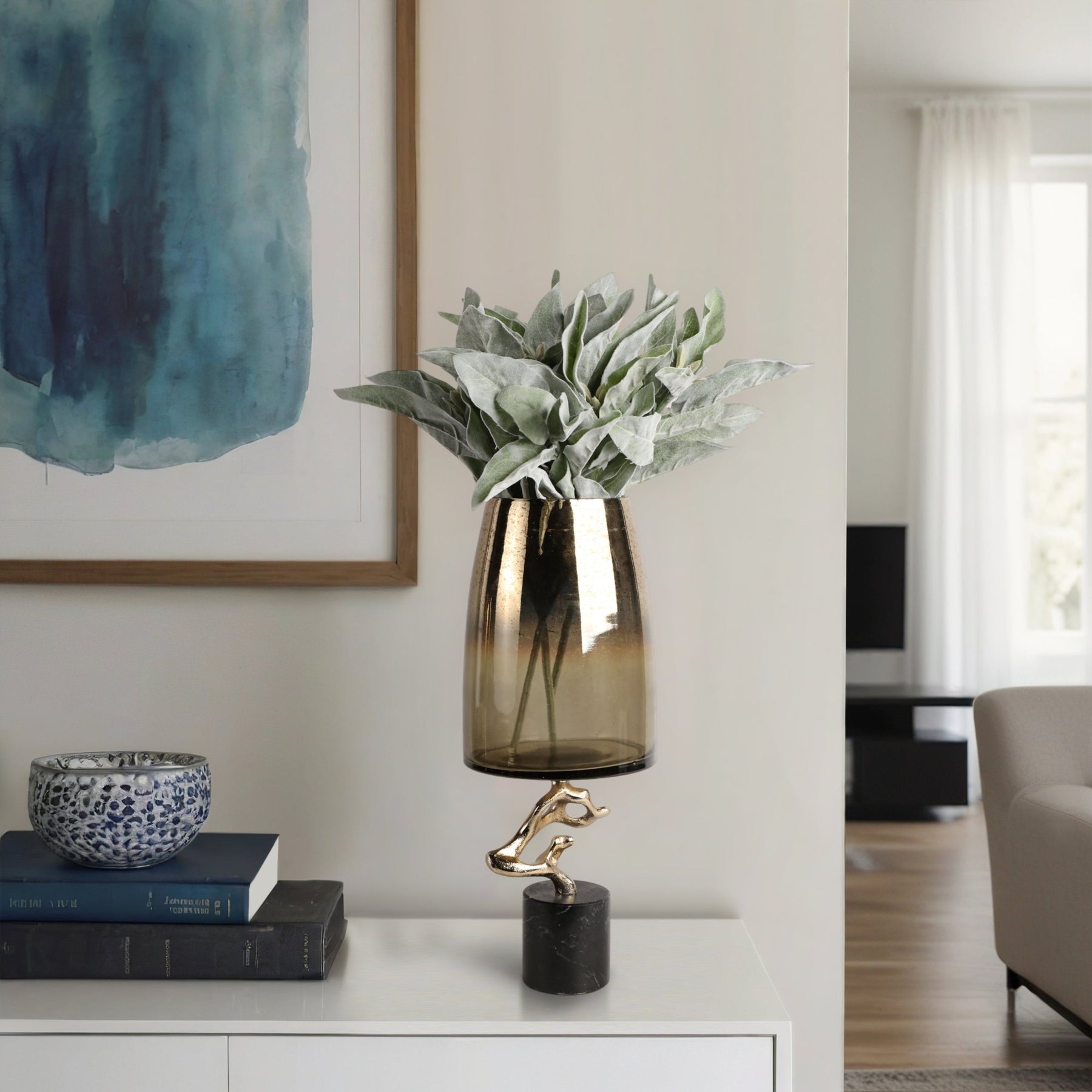Lusaka Hurrican Glass W/stone Base, Gold - Al Rugaib Furniture